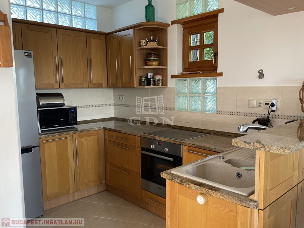 Nyílászárók: spalettás hőszigetelt tölgyfaablakok, mozgás-nyitásérzékelő riasztórendszerrel, kamerákkal.
