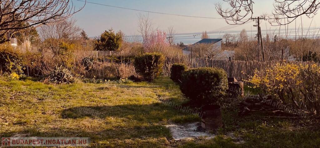 A telek csendes, nyugodt könnyen megközelíthető utcában található, területe 1189 m2, két helyrajzi számon, változóan lejtős, egyenetlen terepadottságú, bekerített, Balatoni részpanorámás terület.