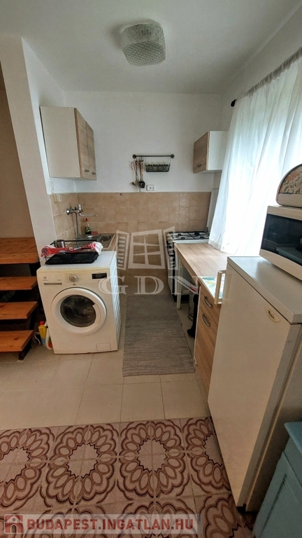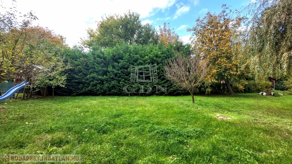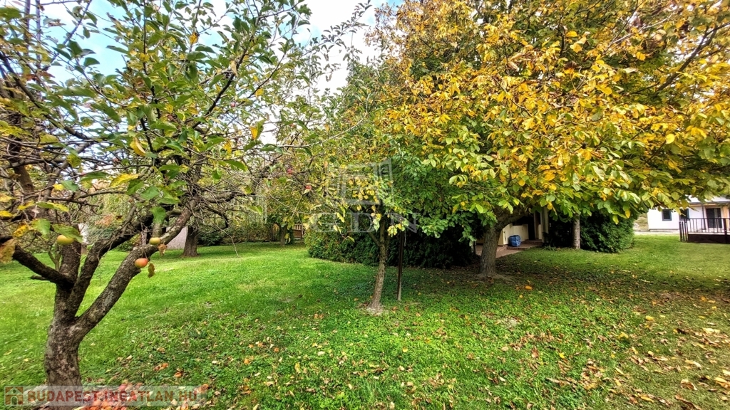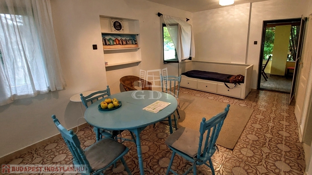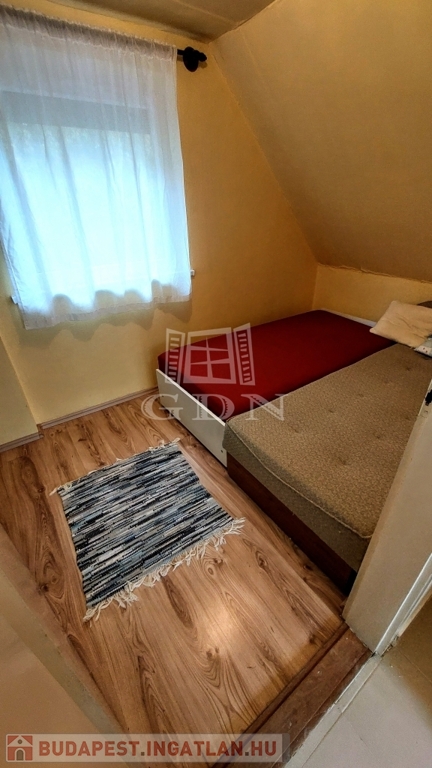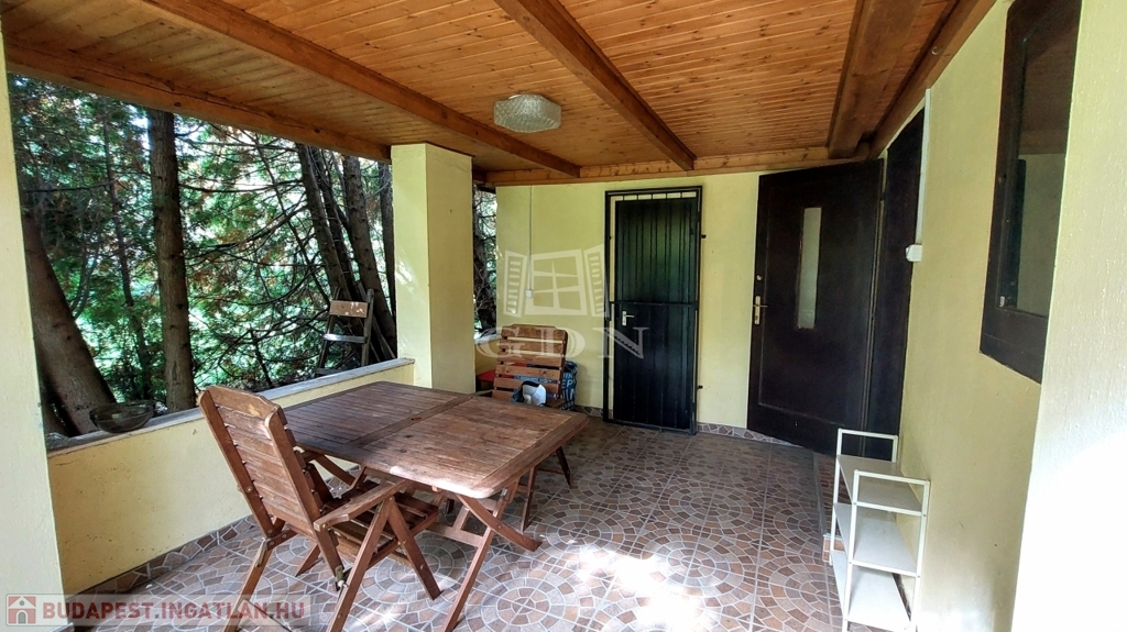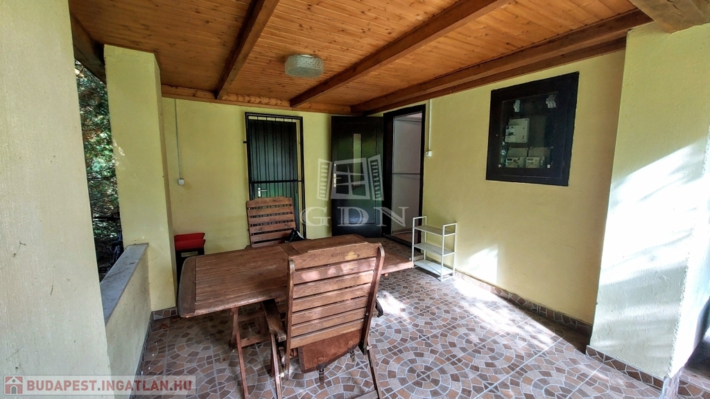 A téglából épült 59 m2-es házat örökzöldek veszik körül bájos, romantikus környezetet teremtve. A szép, rendezett kertben a tuják mellett számos gyümölcsfát is találunk. A nagy, fedett terasz összeköti a kertet és a házat, kiváló helyszín családi, baráti összejövetelkhez. Innen nyílik az egy légterű nappali-konyha-étkező, ahonnan nyílik a fürdőszoba és innen lehet felmenni a két fenti hálóhoz.