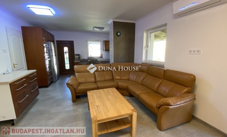 A felső szinten egy közlekedő, szoba és fürdőszoba WC található, ez a rész azonban még befejezésre vár, így az új tulajdonos saját igényei szerint alakíthatja ki.Az ingatlan fűtését egy pellet kazán és hűtő/fűtő klímaberendezés biztosítja, így akár egész évben használható.