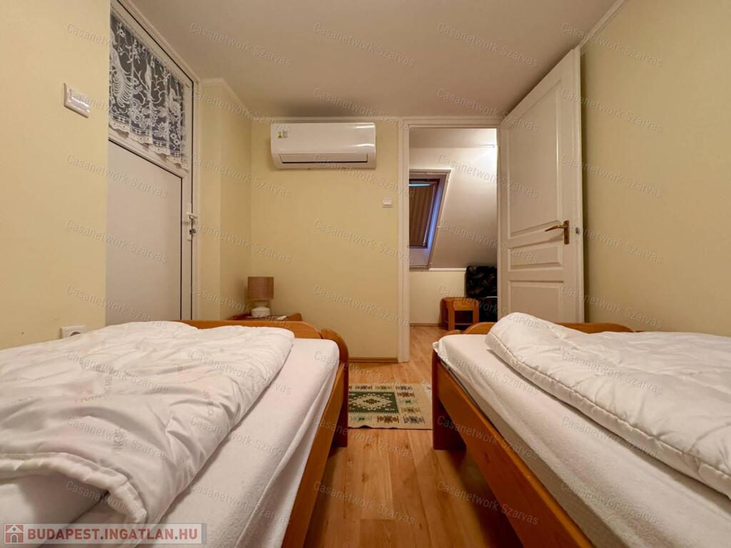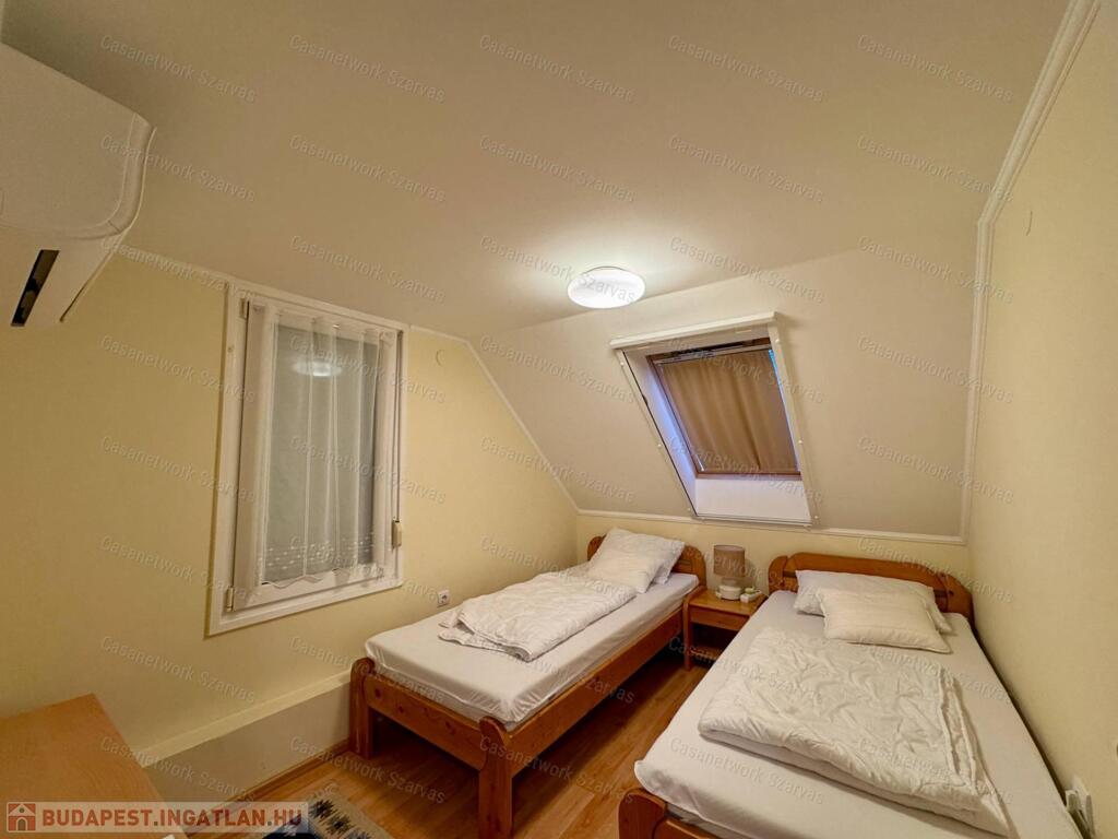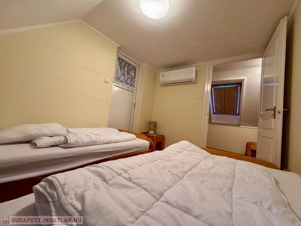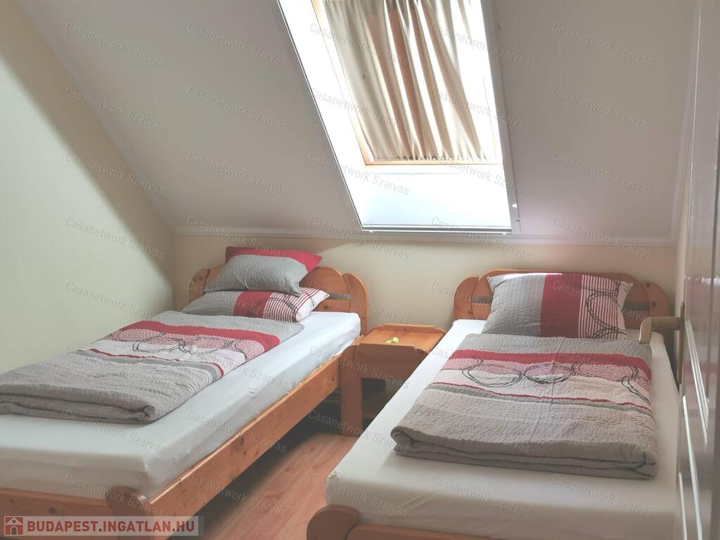 - Az ingatlan tetőterén folytatódik a lépcsőház, valamint kialakításra került egy előtér, két szoba és egy loggia szerkezet.