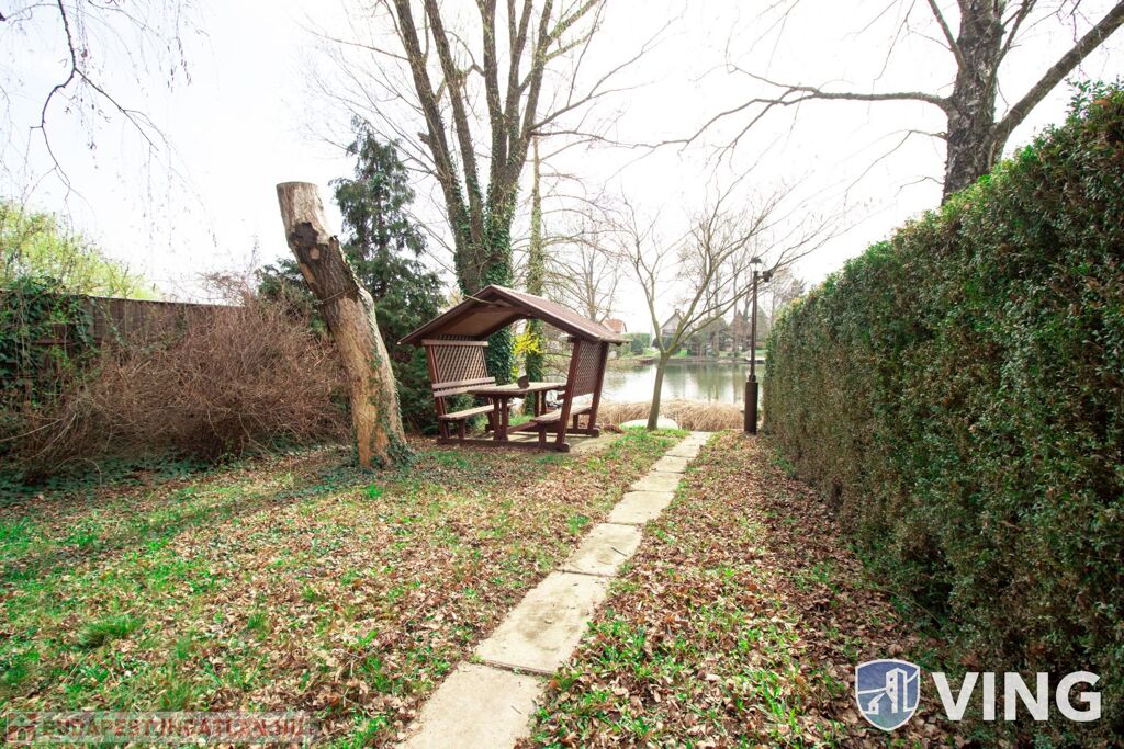Az ingatlanhoz tartozó telek rendezett, fás, borkos terület, a part és az utca felől is diszkét pihenést biztosít.