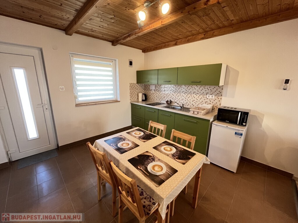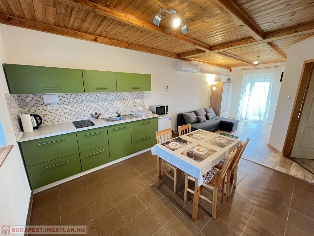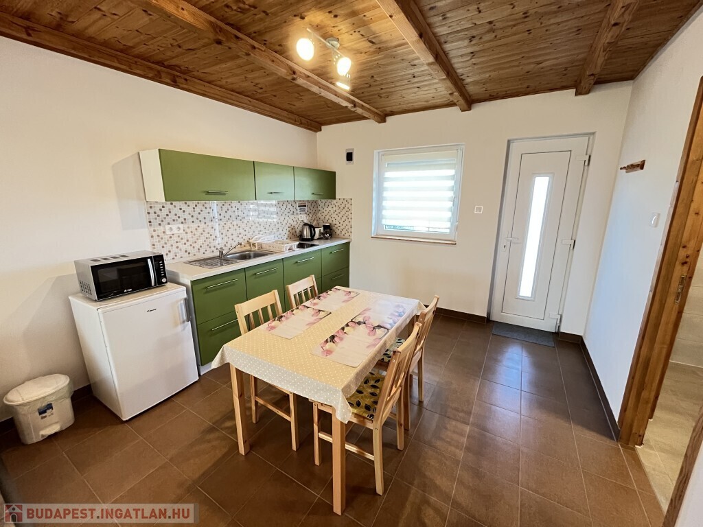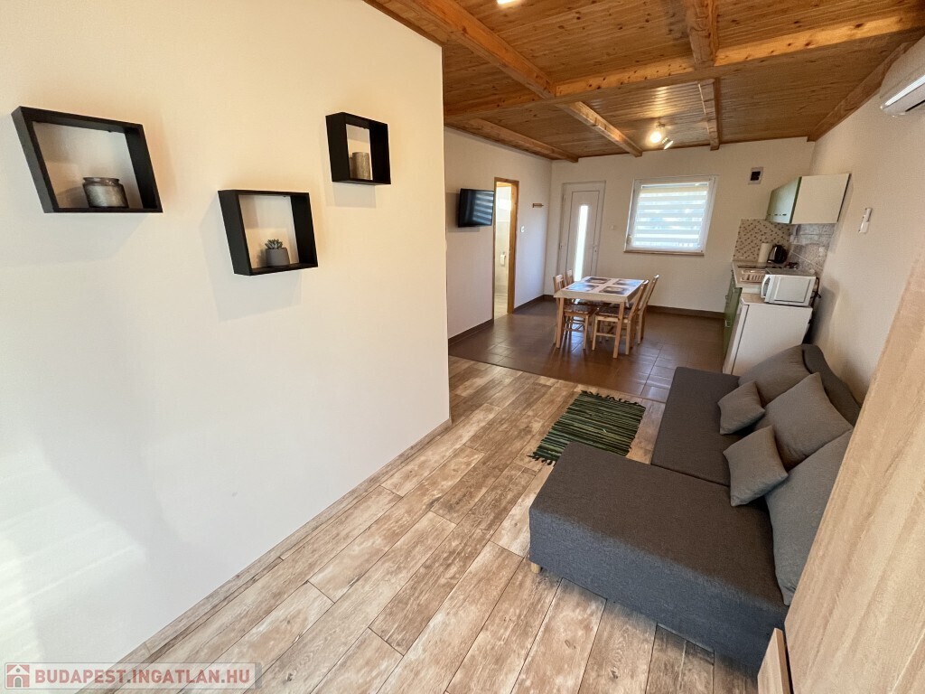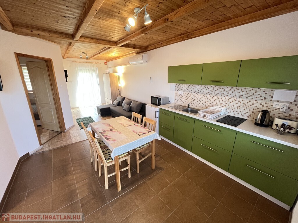 Buzsákon, Csisztafürdőn - külföldiek által kedvelt Balaton közeli településen - a Muskátli utcában, belterületi övezetben található, 2019-ben épület 76,72 m2-es újszerű állapotú üdülőház - eladó. Az épület 2 db 38,36 m2-es apartman. Mindkét apartmanban nappali-konyha-étkező, félszoba, fürdőszoba-wc, terasz helyiségek találhatóak. A telekre az apartmanokhoz 1 db vízóra és 1 db 32A. villanyóra került bekötésre. Az apartmanok fűtése és hűtése klímával, a meleg víz villanybojler megoldott, amelyet 2,5 kw. napelemes rendszer támogat, a szennyvíz emésztő gödörbe szikkasztón keresztül folyik. Mindkét apartmanhoz tartozik kocsibeálló, az udvaron szerszámos tároló és kerti bográcsozó, sütögető került elhelyezésre és leanderek, argentin selyemakácfa és törpe gránátalma bokor teszi hangulatossá a hátsó zöld területet, amely teljesen körbekerített. Az épületre külső 5 cm. szigetelés, a födémre 20 cm. üveggyapot lett elhelyezve. Az üdülőház befektetésre is kiválóan alkalmas, 300 méterre található a kisvasút állomása, 5 km.-re fekszik Fonyód, amit aszfaltos úton lehet megközelíteni, illetve 800 méterre található a gyógyfürdő, megépítették a napelemes parkot és egy sportlövészeti terület áll rendelkezésre akár versenyek céljából is. Telek: 492 m2