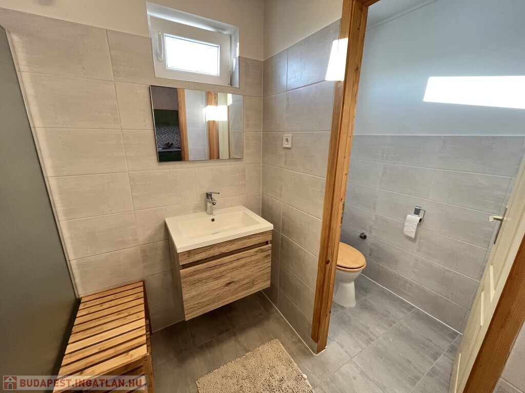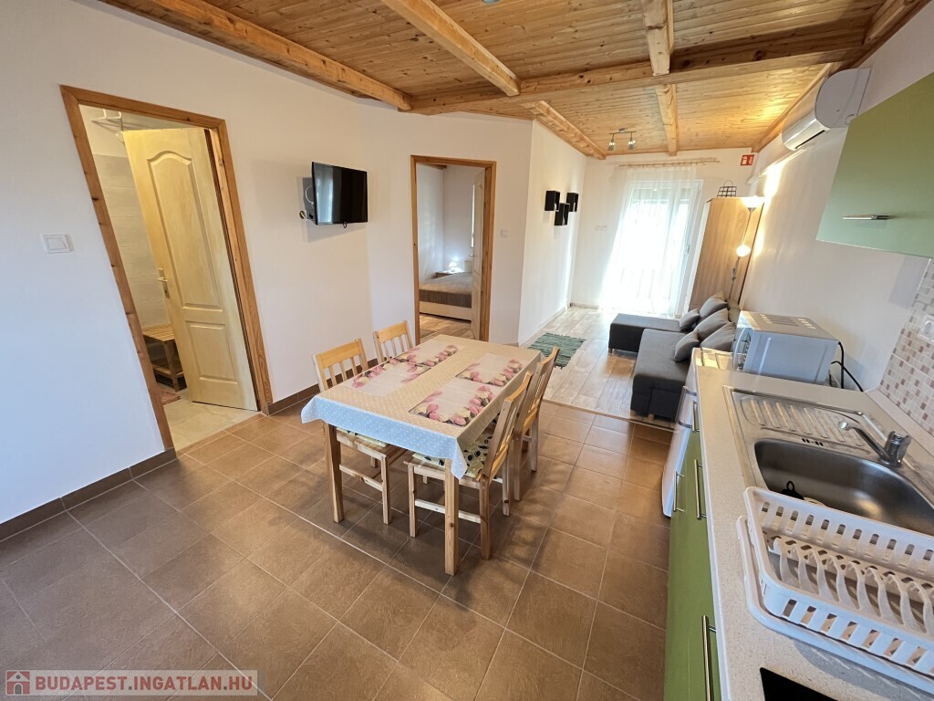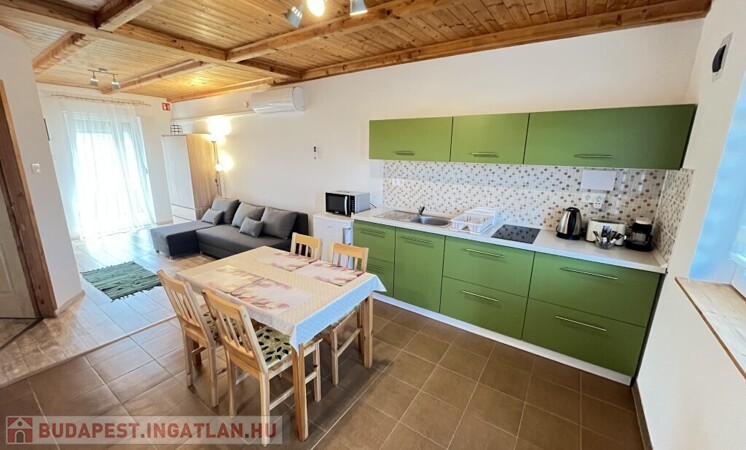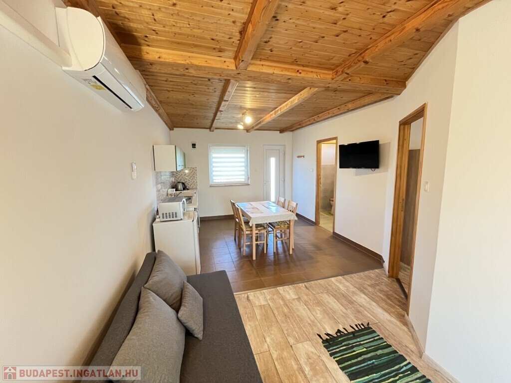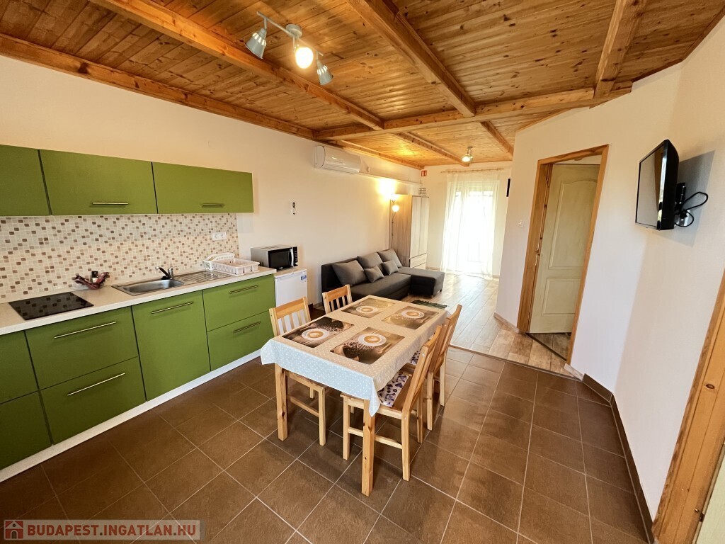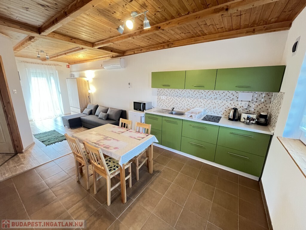 Buzsákon, Csisztafürdőn - külföldiek által kedvelt Balaton közeli településen - a Muskátli utcában, belterületi övezetben található, 2019-ben épület 76,72 m2-es újszerű állapotú üdülőház - eladó. Az épület 2 db 38,36 m2-es apartman. Mindkét apartmanban nappali-konyha-étkező, félszoba, fürdőszoba-wc, terasz helyiségek találhatóak. A telekre az apartmanokhoz 1 db vízóra és 1 db 32A. villanyóra került bekötésre. Az apartmanok fűtése és hűtése klímával, a meleg víz villanybojler megoldott, amelyet 2,5 kw. napelemes rendszer támogat, a szennyvíz emésztő gödörbe szikkasztón keresztül folyik. Mindkét apartmanhoz tartozik kocsibeálló, az udvaron szerszámos tároló és kerti bográcsozó, sütögető került elhelyezésre és leanderek, argentin selyemakácfa és törpe gránátalma bokor teszi hangulatossá a hátsó zöld területet, amely teljesen körbekerített. Az épületre külső 5 cm. szigetelés, a födémre 20 cm. üveggyapot lett elhelyezve. Az üdülőház befektetésre is kiválóan alkalmas, 300 méterre található a kisvasút állomása, 5 km.-re fekszik Fonyód, amit aszfaltos úton lehet megközelíteni, illetve 800 méterre található a gyógyfürdő, megépítették a napelemes parkot és egy sportlövészeti terület áll rendelkezésre akár versenyek céljából is. Telek: 492 m2