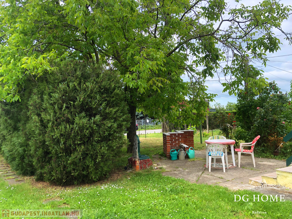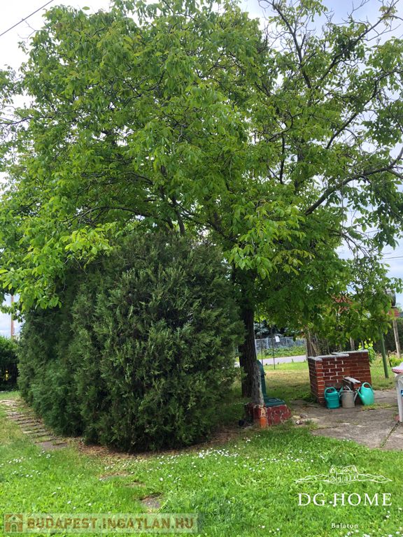 A házhoz tartozó kert is igazi kincs: egy hatalmas diófa gondoskodik a kellemes árnyékról a legmelegebb nyári napokon is, így a kerti pihenés, olvasás vagy beszélgetés mindig kényelmes lehet.