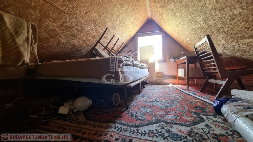 A ház alápincézett, fűthető (kályha van) tetőteres kis terasszal. Wc van a házban. Utcafrontja 23m, beépíthetősége: 10% Az utcában állandó lakosok élnek. Telken számos gyümölcsfa található, határai jól láthatóak.