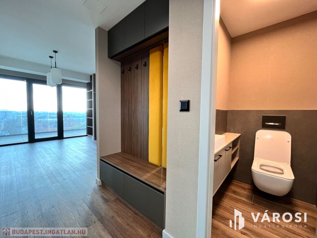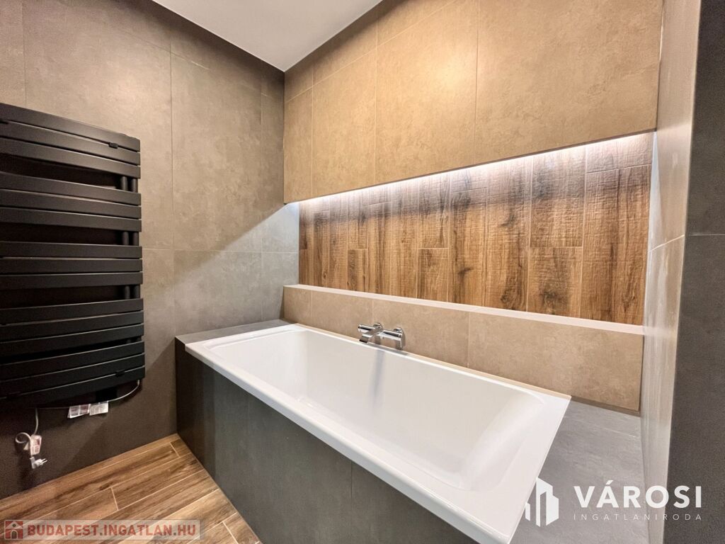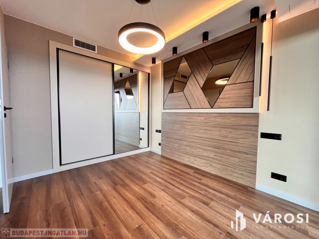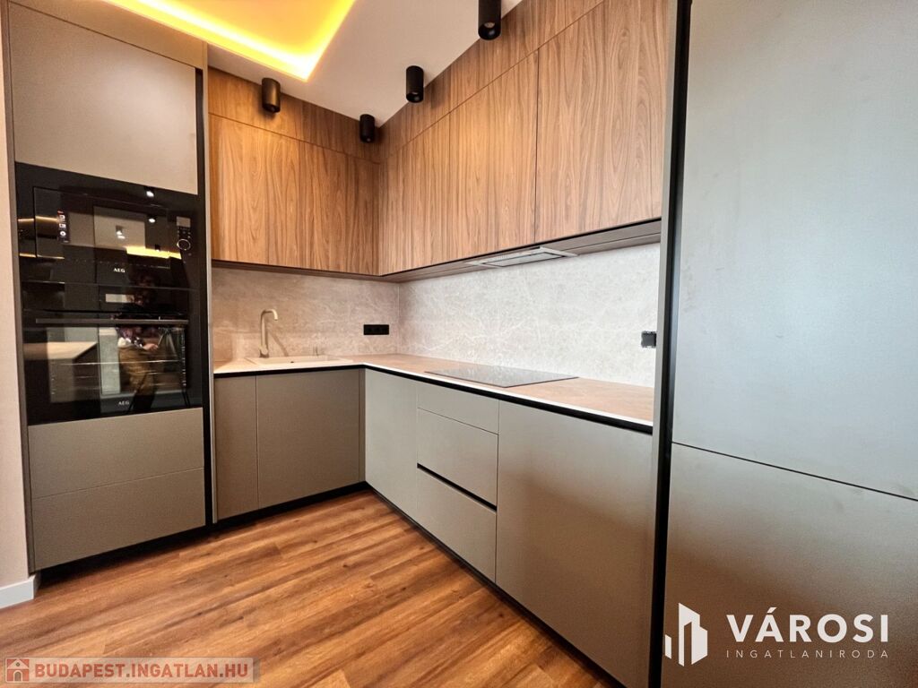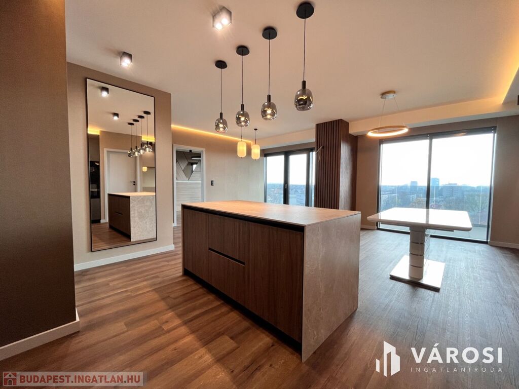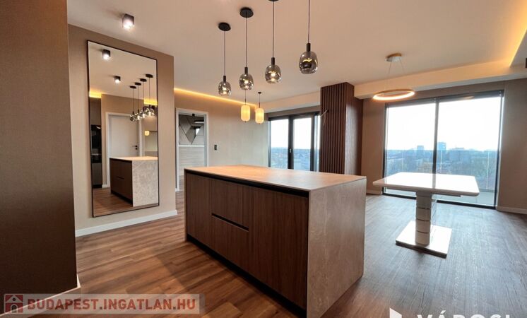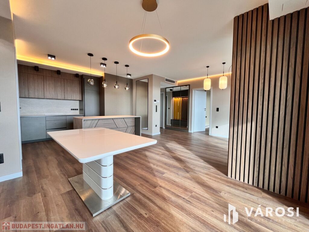A konyha teljesen gépesített, a beépített berendezések a legmagasabb minőséget képviselik. A lakás belső tereit designer tervezte, minden beépített anyag és felület prémium kategóriás.