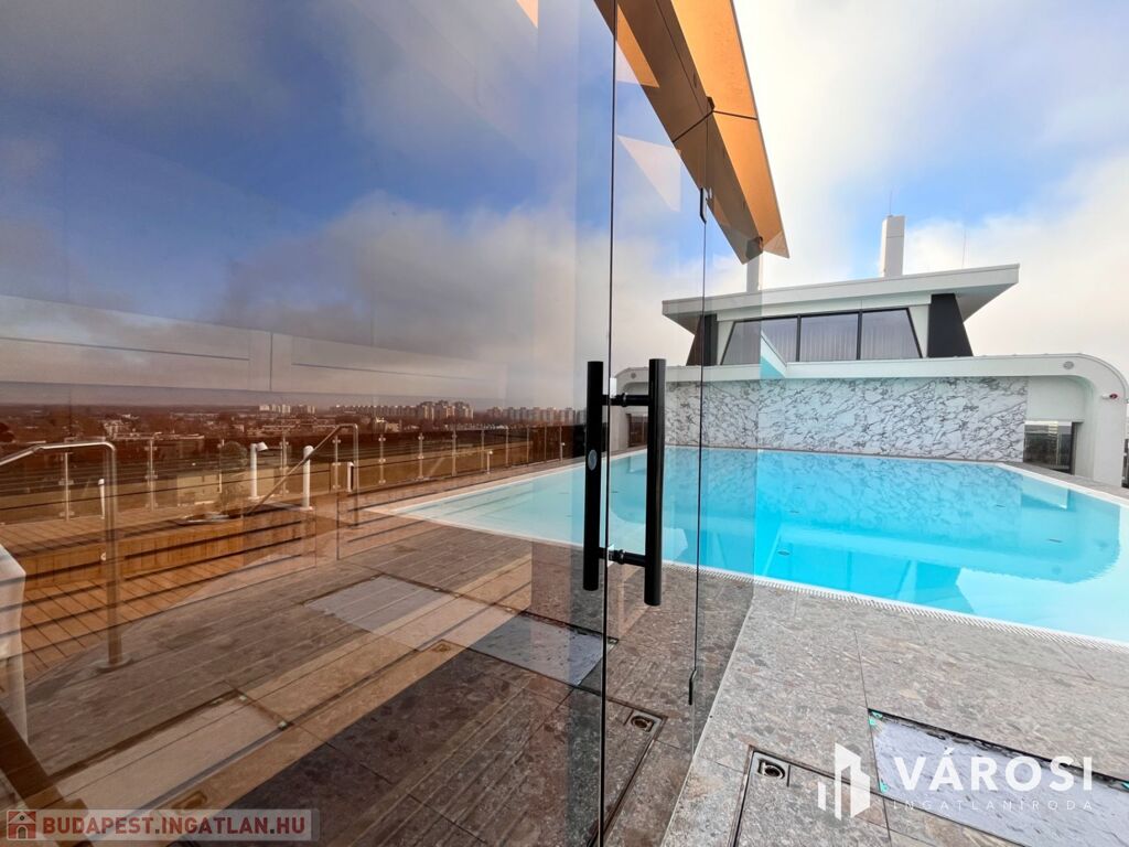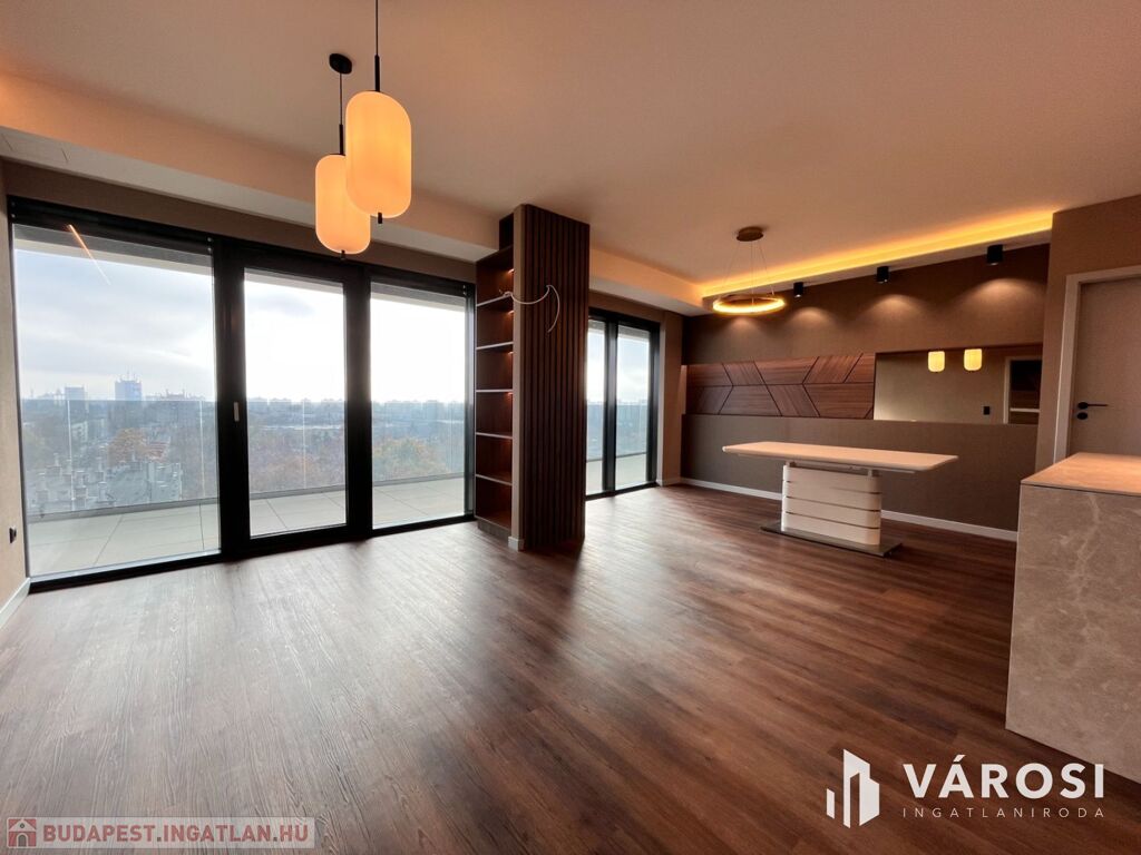 Debrecen egyik legfrekventáltabb sugárútján, az ikonikus Egyetem Tower társasház legfelső lakószintjén (8. emelet) eladó egy új építésű, 91 m²-es, prémium kategóriás luxuslakás.
