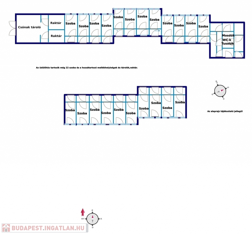 Az ingatlan összesen 9912 m²-es területen helyezkedik el, és közel 700 m² téglafalazatú épülettel büszkélkedhet. A komplexum egykor népszerű üdülőként üzemelt, mely 22 egyszobás apartmant és a főépületben további 6 szobát, 3 apartmant foglalt magában. A teljes terjedelmében körbekerített ősfás parkot hangulatos állólámpás megvilágítással látták el. Az ingatlan 60 méter hosszú betonozott parkolóval várja vendégeit.