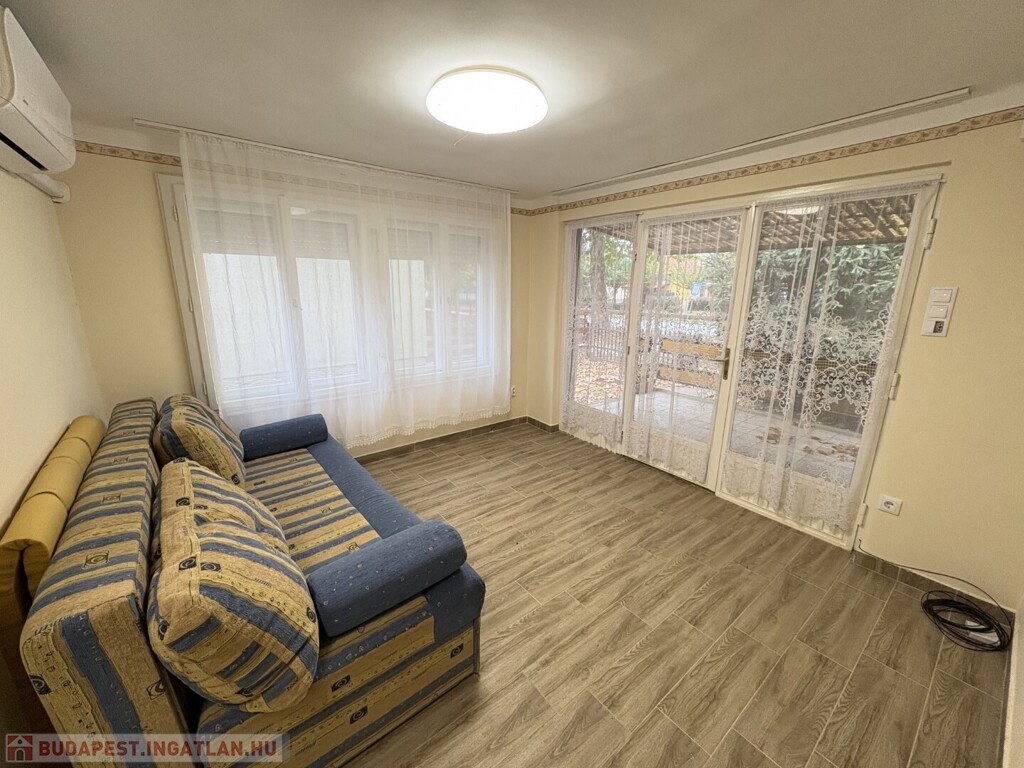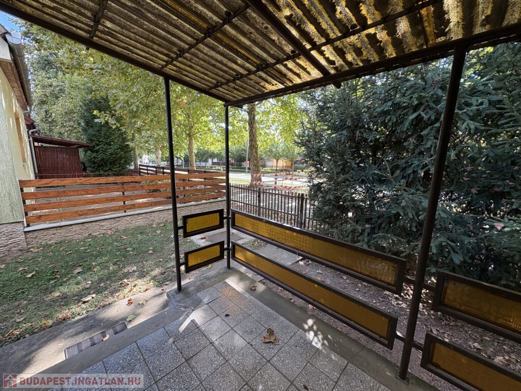 Dombóvár - Gunarasban - a gyógyfürdőtől csupán 200 m-re található - akár azonnal is birtokba vehető - 35 m2-es téliesített nyaraló eladó. Az épületben előszoba-nappali, 2 félszoba, kis konyha beépített konyhabútorral (Candy mosogatógéppel, Bosch főzőlappal és Cata elszívóval), kamra-kijárattal a hátsó fedett teraszra. Az épület akár télen is használható, a fűtése kandallóval megoldott, valamint a nappaliban légkondicionáló is felszerelésre került. A parkolás gépkocsival az udvarban lehetséges, ahol kerti csap, és szerszámok tárolására alkalmas kisház is áll. Telek: 305 m2.