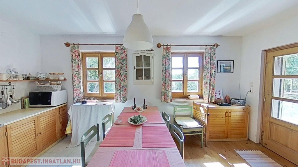 A Balatontól 6 km-re, a belterülettől néhány 100 méterre fekvő, minden évszakban könnyedén megközelíthető, 1994-ben épült, D-i tájolású, 2 szintes épület alsó szintje 78 m2, felső szintje 30 m2, mely tartalmaz két teljes értékű hálószobát, 2 fürdőszobát, valamint egy tágas előtér-nappali-konyhát.