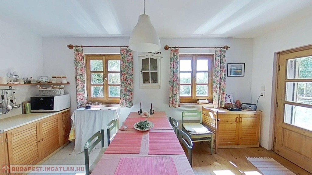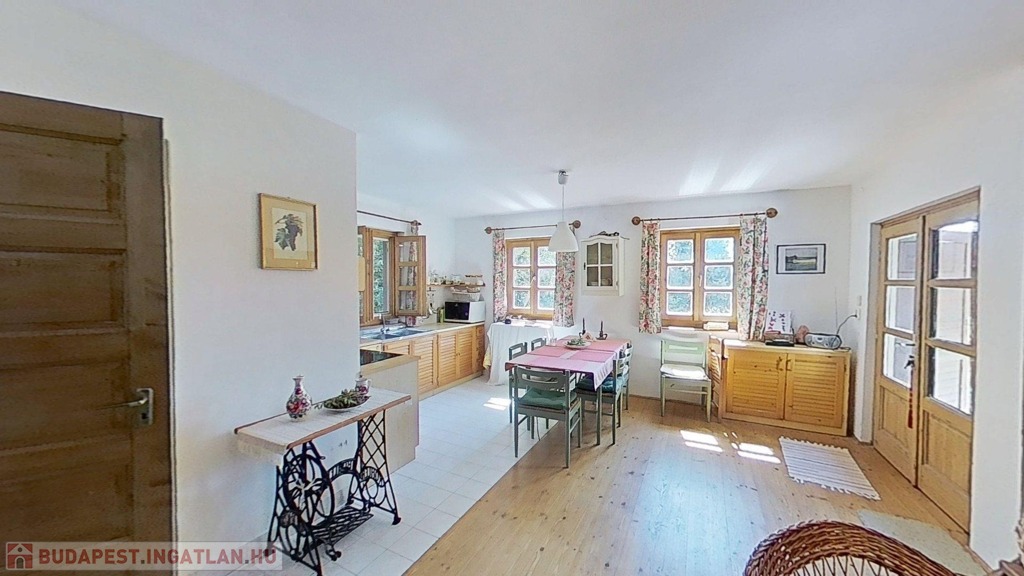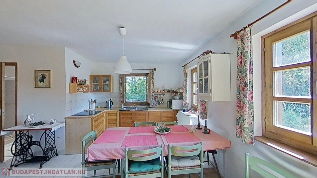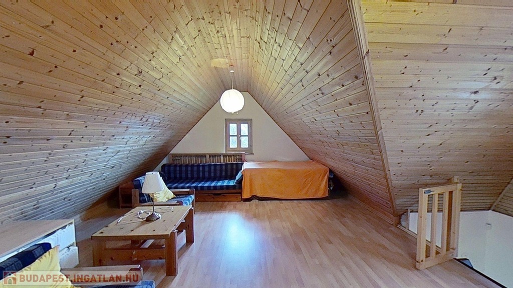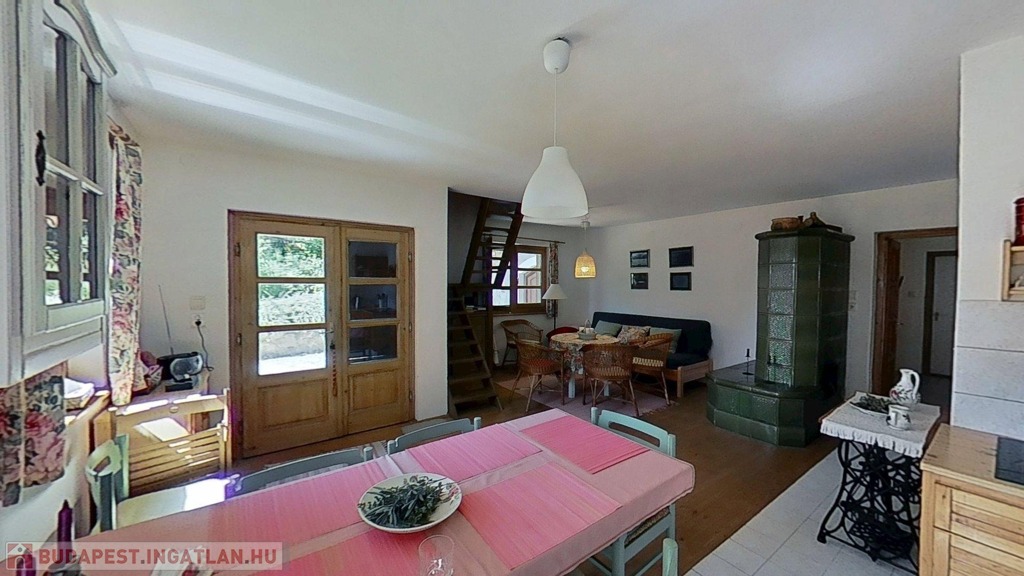 A Balatontól 6 km-re, a belterülettől néhány 100 méterre fekvő, minden évszakban könnyedén megközelíthető, 1994-ben épült, D-i tájolású, 2 szintes épület alsó szintje 65 m2, felső szintje 20 m2, mely tartalmaz két teljes értékű hálószobát, 2 fürdőszobát, valamint egy tágas előtér-nappali-konyhát.