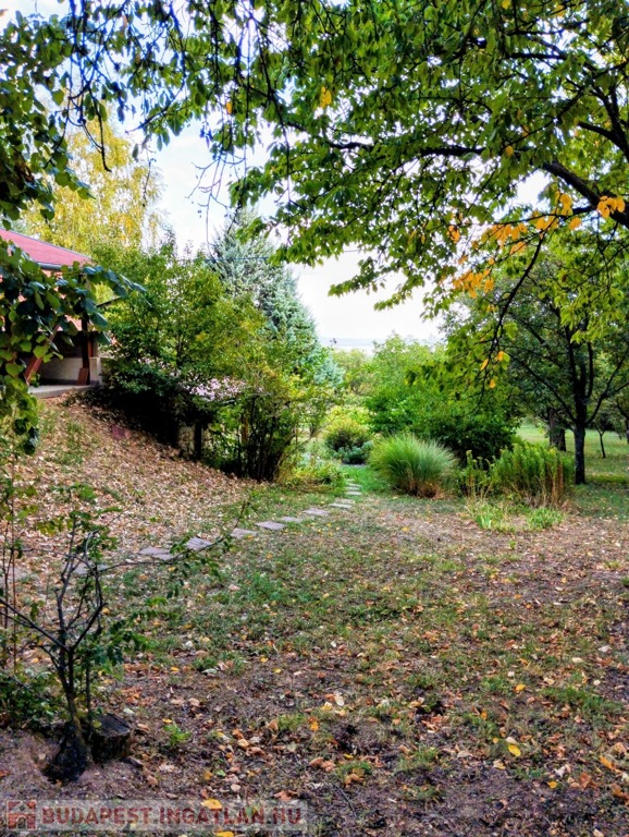 Téglalap alakú, hangulatos, bekerítettlen, enyhén lejtős 3298 m2-es telek tartozik hozzá, melyet gyümölcsfák (6 cseresznyefa, meggyfa, fügefa), csemege szőlő, valamint mandula, nyírfa, feketefenyő, illetve boróka tesz még színesebbé, kellemes intimitást biztosítva minden oldalról a ház tulajdonosának.