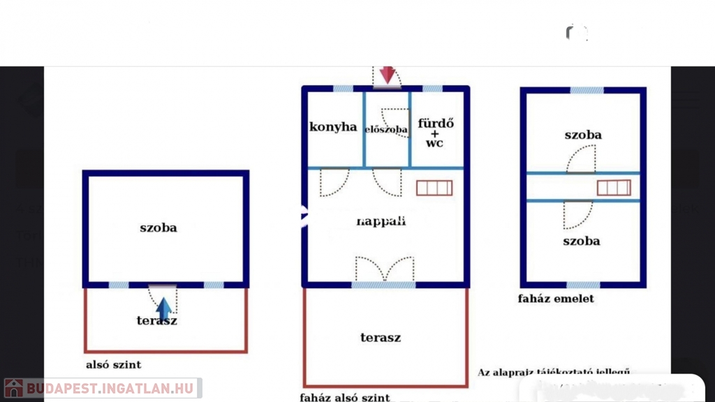 Alsó faház szint: terasz, nappali, konyha, előszoba, fürdő/WC (34 m²)