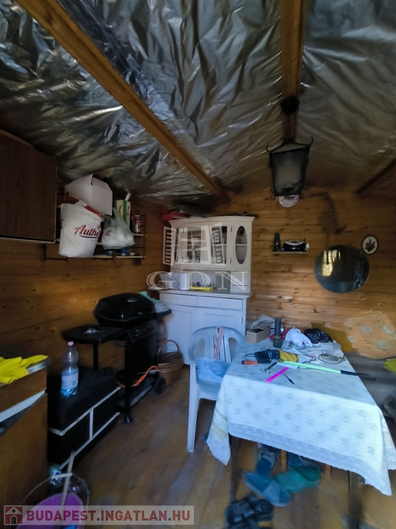 Dunakeszi Vizes kertek részén eladó 791 nm-es telken, egy nettó 10 nm-es, egy helyiségből álló faház.