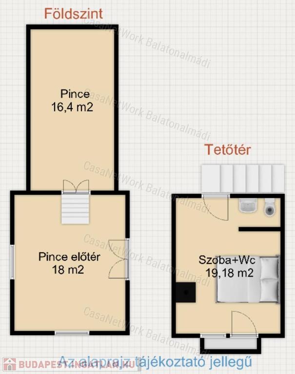 - két szinten összesen 37 m2 nettó alapterületű ház + pince