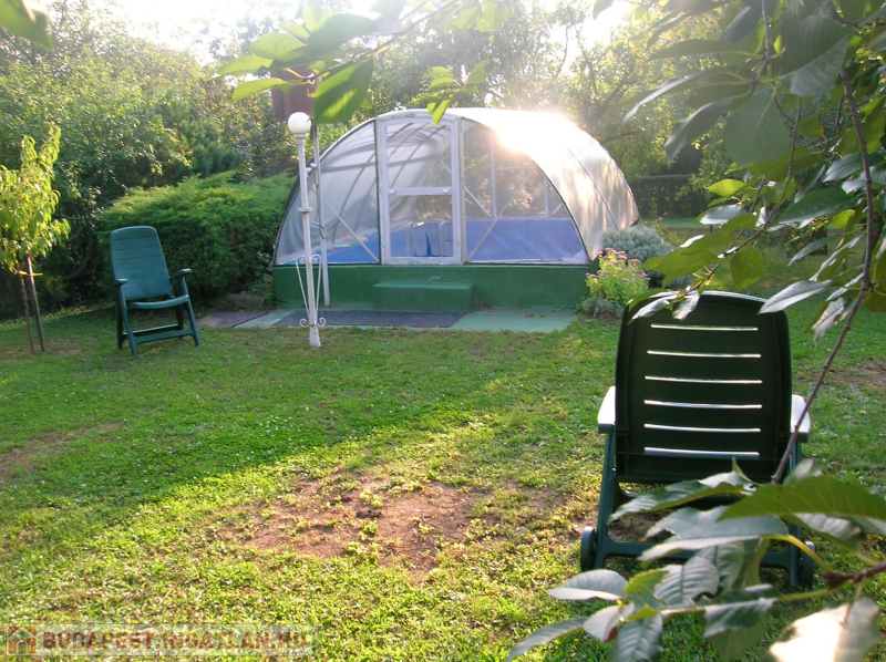 A személyautók elhelyezésére két garázs is rendelkezésre áll. A kertben több helyen is elhelyeztek fedett kiülő- és sütögető helyet, szerszámtárolót, valamit egy 80 cm mély, 3 X 4 m-es fedett kismedence is a kikapcsolódást szolgálja.