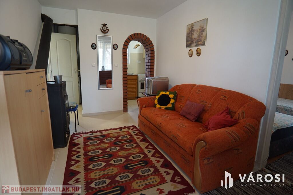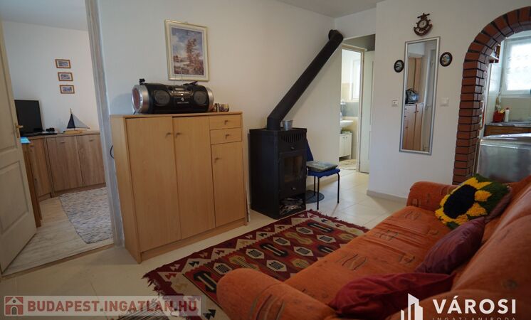 A ház melegét egy fa tüzelésű kandalló szolgáltatja, mely víz térrel is rendelkezik, így akár a központi fűtés is kialakítható. (A két szoba falában az előszerelés, csövezés elkészült a kandallóig.)
