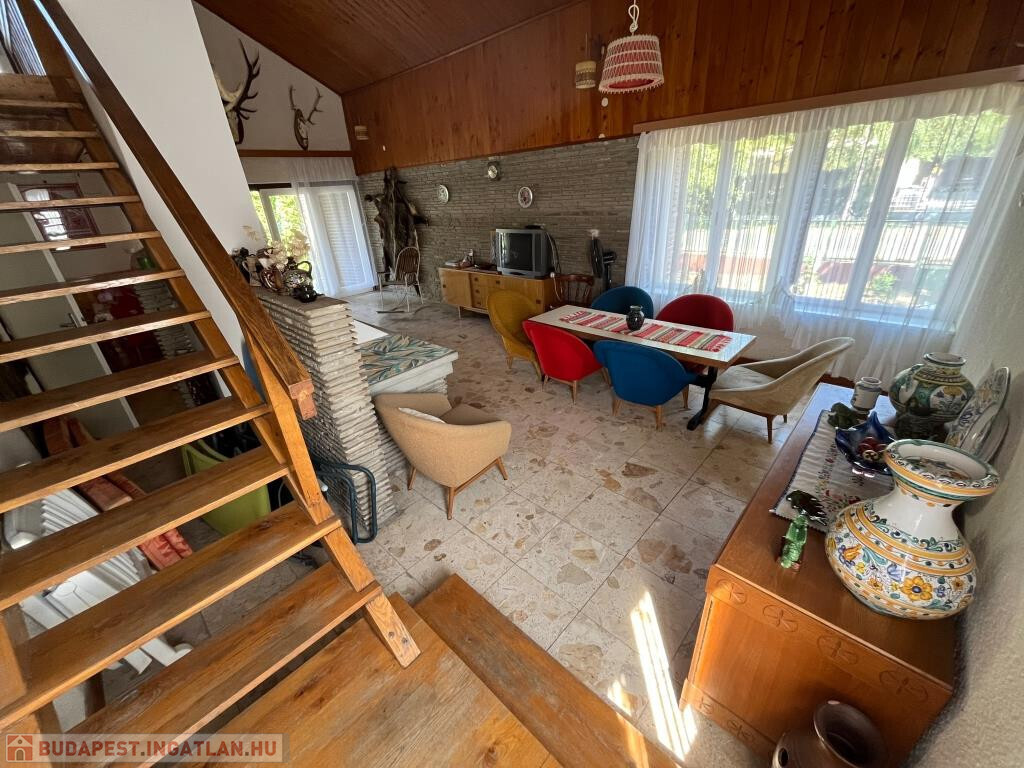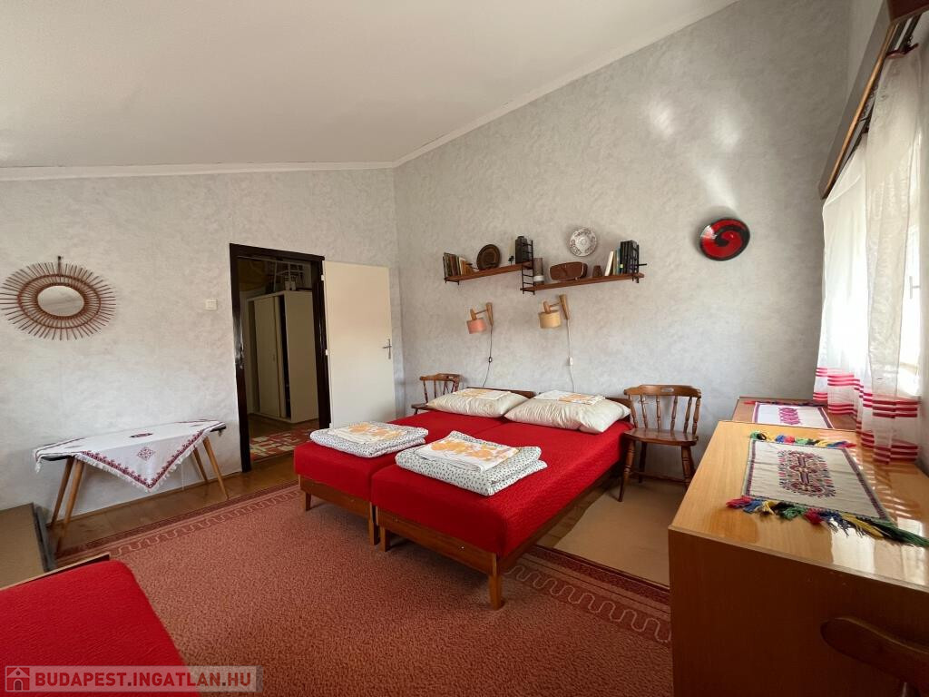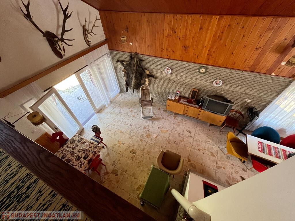 Fonyódliget egyik csendes, partközeli utcájában, a Thököly utcában kínáljuk megvételre ezt a kétszintes, 110 m2-es, jó elosztású családi nyaralót. Impozáns nappalijában harmonikusan van jelen a természetes fa- és a kőburkolat, a tágas, világos belső tér igazán barátságos, nagyobb társaságnak is kényelmes helyet ad. Terasz is csatlakozik hozzá. A földszinten ki van még alakítva egy háló, a zuhanyzós fürdő és a konyha; minden helyiség egy kis előtérből nyílik, ahová bejárati ajtó is vezet. Az emeletre a nappaliból megy fel a lépcső, itt szintén a közlekedőből nyílik két szoba, a WC, valamint egy erkély. A ház jó állapotú, a kerttel együtt szépen karbantartott. A közművek közül a gáz kivételéven minden bevezetésre került. A telek teljesen sík, 459 m2, füves, parkos. Kifejezetten jó helyen fekszik a nyaraló, a Balaton kb. 200 m, vagyis 3-4 perc sétával elérhető a strand. A környék rendezett, az utca csendes, nyugodt, a főút távolabb fut.