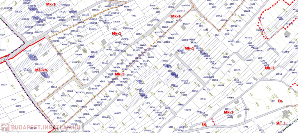Övezeti besorolása mk-1 mely 5%-os beépíthetőséggel számolva 50nm-es alapterületű ingatlan építését engedélyezi tetőtér beépítésével.
