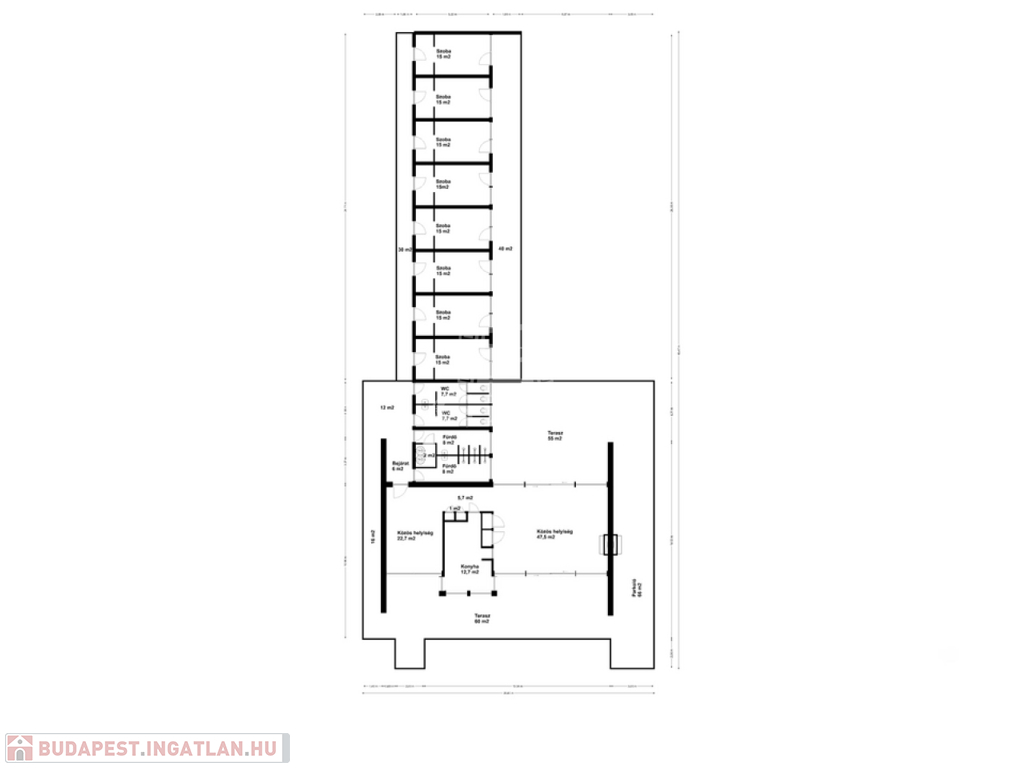 Vizesblokk ( 2 zuhanyzó, 2 WC, bojler helyiség) 33 m2