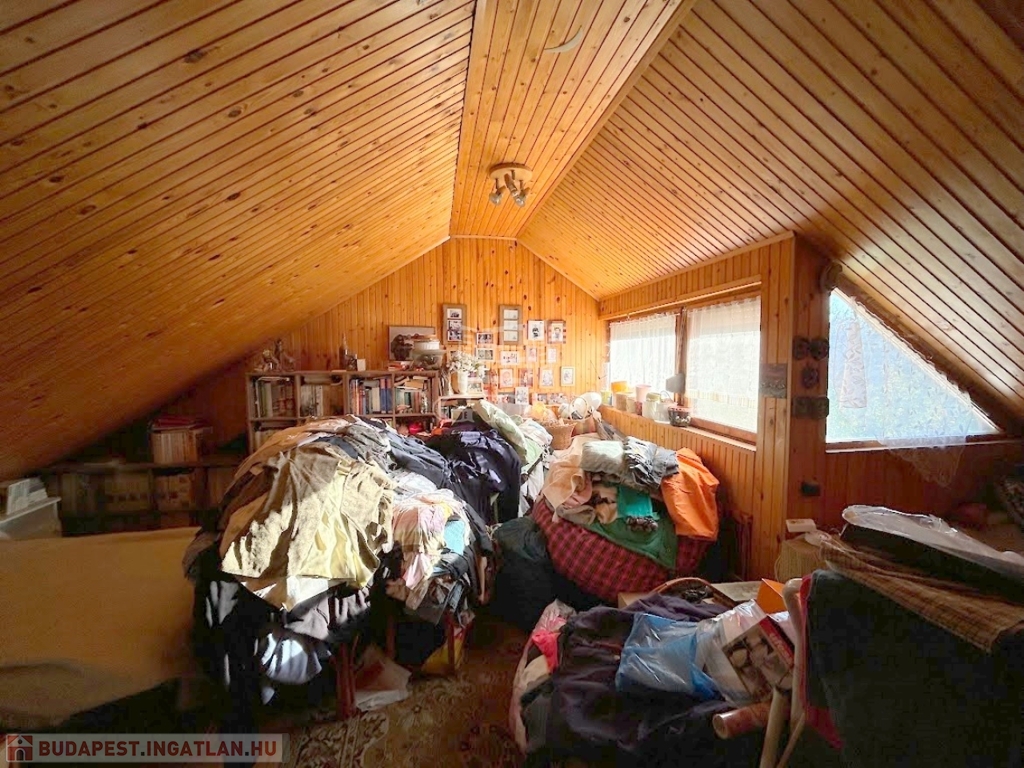 4804. Gárdonyban, 1 km távolságra a tóparttól, csendes kertvárosi utcában, 1975-ben épült favázas könnyűszerkezetes "Éva faház" ikernyaraló, a földszinten tégla bővítményi résszel, gázkonvektor fűtéssel, kis melléképülettel, fedett terasszal, 233 m2-es telekrésszel, közepes-felújítandó állapotban eladó. Részleges felújítások történtek az elmúlt 10 évben: fémlemez héjazat, részleges homlokzati hőszigetelés, külső nyílászárók részleges cseréje. Irányár: 39,99 Mft