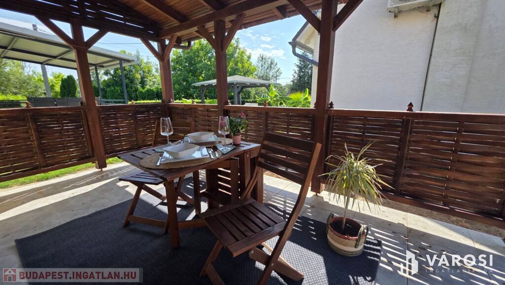 Az épülethez tartozik egy 14.2 m²-es, fedett terasz is mely tökéletes helyszín a nyugodt reggelikhez vagy esti beszélgetésekhez.
