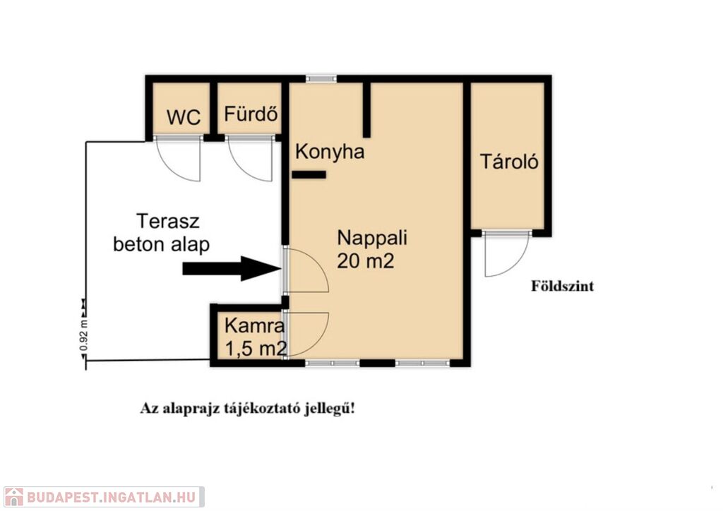 Az alsó részen egy hangulatos nappali, terasz, tusoló+WC, főzőfülke, kamra található, az emeleti részen 1 szoba és egy előtéri rész. Valamint egy tároló helyiség is.