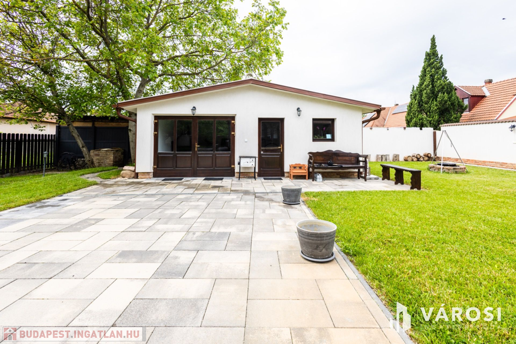 - egy lakható melléképület is helyet kapott a kertben, mely szintén beton aljzattal, tégla falazattal, külső hőszigeteléssel lett kialakítva, így lehetőséget nyújtva további egy vagy akár kettő apartman kialakítására