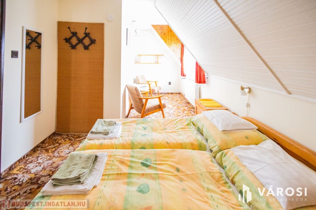 Gyulán, kiemelt övezetben, a Várfürdő főbejáratától mindössze 200 méterre eladóvá vált egy nagyon jó elosztású, 480 nm alapterületű panzió. Az ingatlanban 12 különálló szoba található, melyek akár 30 fő befogadására is alkalmasak, a szobákhoz 1-2 egységenként külön fürdőszoba és WC került kialakításra. Az ingatlan két épületrészből áll, melyek külön bejárattal két utcáról is megközelíthetőek. Az épületek 3 szintesek, minden szinten közösségi társalgó lett kialakítva, így tökéletes lehet akár nagyobb családok, baráti társaságok számára is. Az emeleti szobákból gyönyörű kilátás nyílik a Gyulai várra és a várkertre.