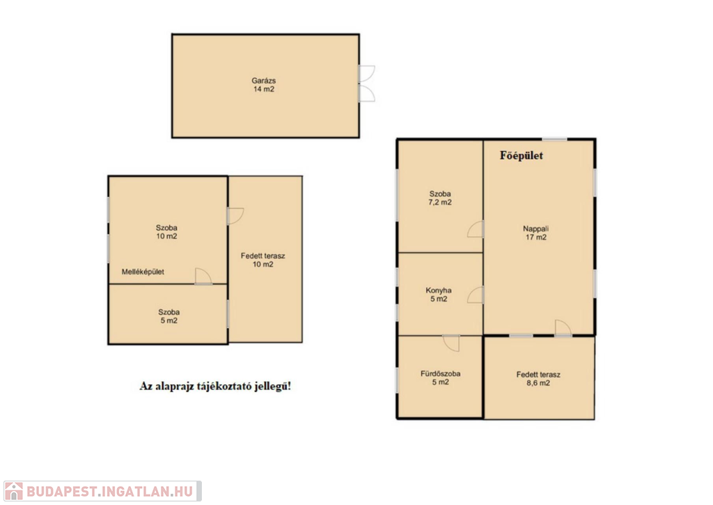 A garázs (szintén könnyű szerkezetes): 14 m2.