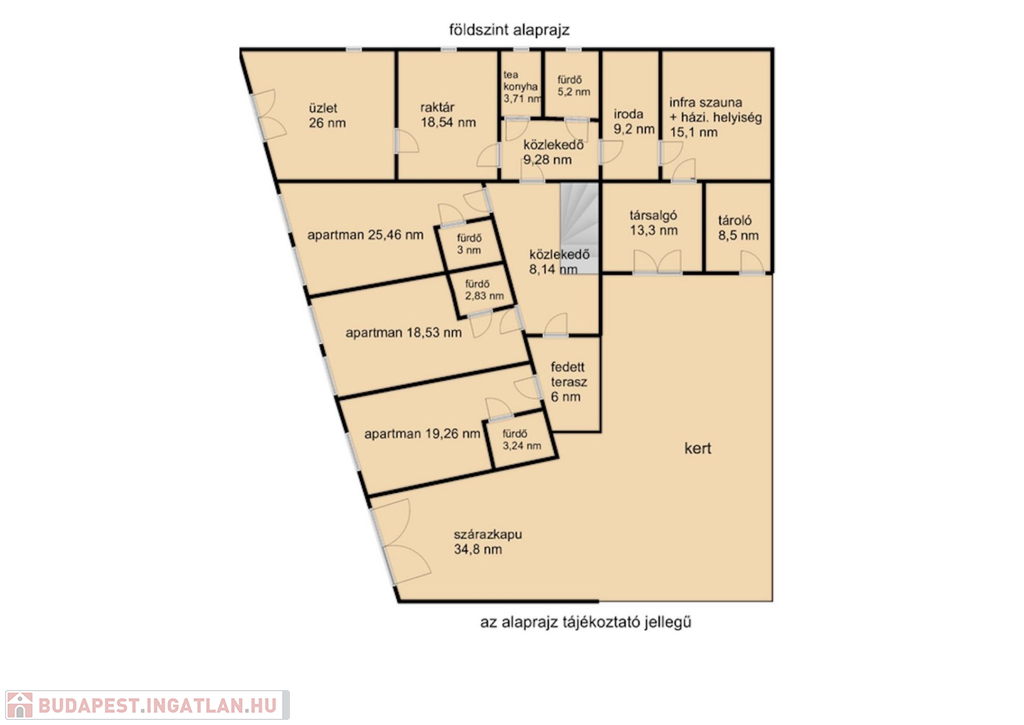 Az ingatlan másik része vályogtégla falazatú, melynek aláfalazása, szigetelése és betonozása 2004-ben szintén megtörtént. Ebben az épületrészben található egy jelenleg is bérbe adott üzlethelyiség, az iroda, egy nagy méretű tároló, illetve a háztartási helyiség, valamint az infra szauna. Ebben az épületrészben igény szerint egy teljes lakórész is kialakítható az apartmanház üzemeltetői számára, hiszen fürdőszobával és konyhával is felszerelt.