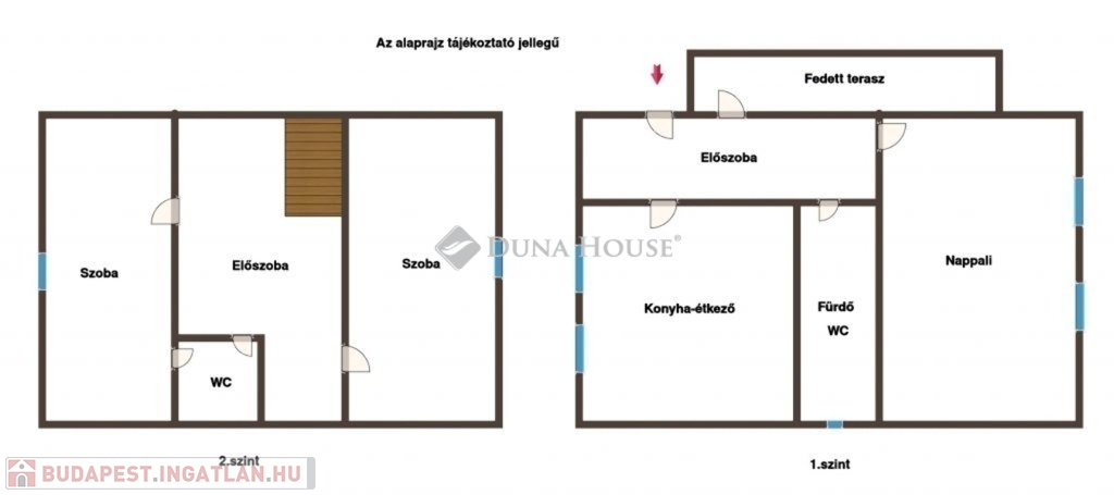 Alsó szint: konyha étkezőnappali egy légtérben fürdőszoba WC-vel
