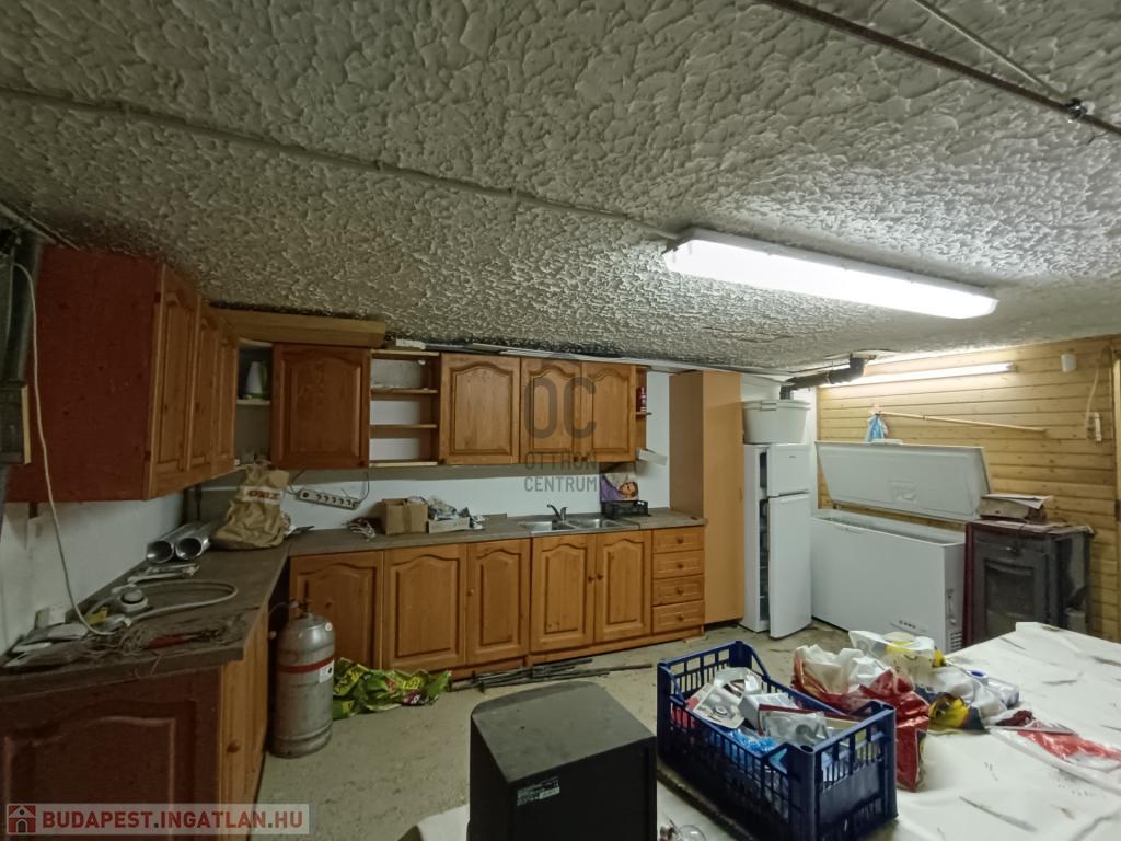 - pinceszinten 60 m2 alapterülettel konyha-étkező, fürdőszoba- zuhanyzóval, tároló, garázs /20 m2/ kapott helyet