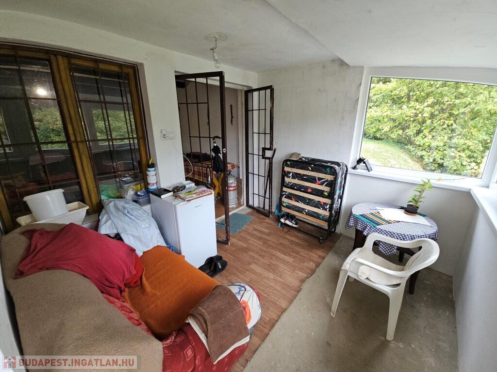 Kaposváron, a Százszorszép utcában kínáljuk megvételre ezt a zártkerti telken épült, állandó lakhatásra is alkalmas kétszintes plusz pincés hétvégi házat, aminek a felújítását elkezdték. Ennek során többek között a földszinti nappaliban kialakítottak konyharészt új konyhabútorral, valamint leválasztottak egy kis zuhanyzós fürdőt WC-vel, és szigetelték a födémet. Itt, a nappali-konyha-étkező szerepet betöltő tágas helyiségben van egy kályha is. Innen vezet le a klasszikus, téglázott boltíves pincébe pár lépcső. A korábbi veranda be lett építve műanyag keretes ablakokkal és bejárati ajtóval, ez most az előtér. Az emeleten két kisebb szoba, illetve tároló kapott helyet, valamint van egy erkély is. A lakótér lent 30, fent 20 m2-es. A házon nagyon sok mindent megcsináltak már, de innentől az új tulajdonos a saját képére formálhatja tovább. A telek 800 m2-es, az utcától lejtős, teraszos, csodálatos panorámát nyújt a völgyre. Több új gyümölcsfa és szépen kialakított konyhakert ad friss zöldséget, gyümölcsöt, és természetesen az ezzel járó örömet, valamint kellemes foglalatosságot egyaránt. Az utca murvával szórt, jól járható. Buszmegálló kb. 300 m-re, azaz 4-5 perc sétára van.