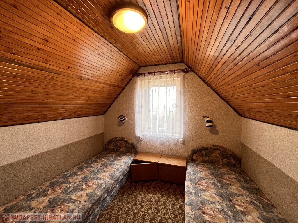 Kaposváron a Deseda-tó közelében - a toponári oldalon - jó állapotú, akár gyorsan birtokba vehető, hangulatos hétvégi ház berendezéssel együtt, gondozott udvarral eladó. Az épület alsó szintjén tágas nappali, konyha, étkező, fürdőszoba, wc helyiségek találhatóak, illetve egy nagyobb méretű fedett terasz is van. A tetőtérben egy nagyobb szoba és két félszoba, valamint egy WC - kézmosó is kialakításra került. Az ingatlan vízellátása vezetékes vízzel megoldott, a meleg vizet villanybojler biztosítja, továbbá derítő is van. Az ingatlan fűtését az alsó szinten egy cserépkályha, a felső szinten villanyradiátor biztosítja. Az ingatlanhoz tartozik egy pince, és egy tároló helyiség is, amely alkalmas lehet a kerti eszközök tárolására. Telek: 967 m2