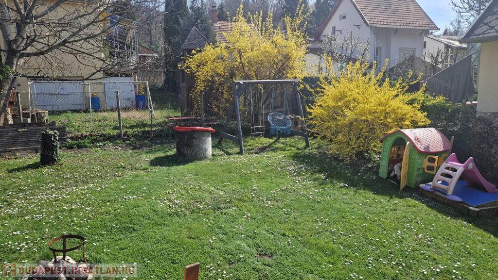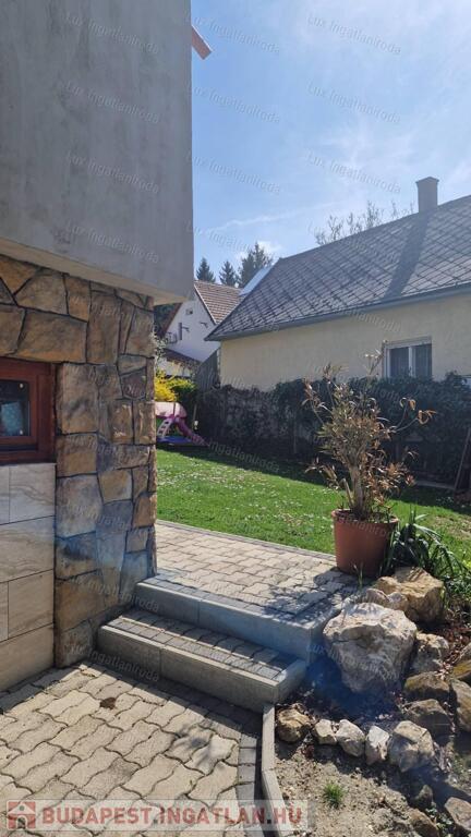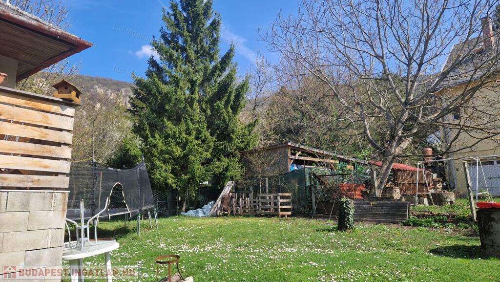 A kertből csodás panoráma nyílik a Pilisre. Az utca murvás úton közelíthető meg, parkolni a ház előtt, illetve a garázsban lehet.