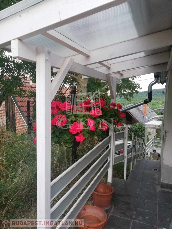 Az örök panorámával rendelkező 3 szintes tégla építésű ingatlan földszintjén fedett terasz, konyha és fürdőszoba került kialakításra.