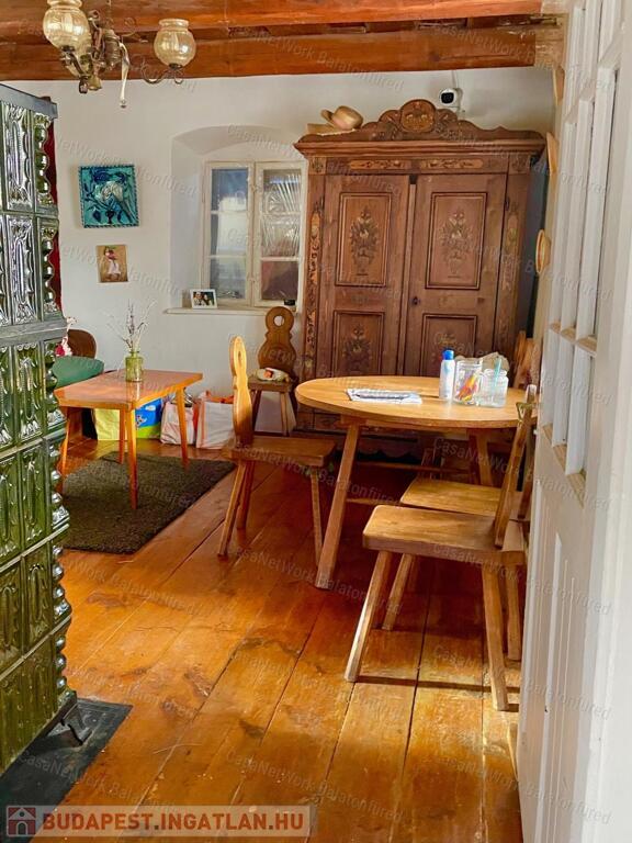 -100 cm vastag kőfalak- eredeti fa nyílászárók, kiváló minőségben megtartott fagerendás mennyezet.