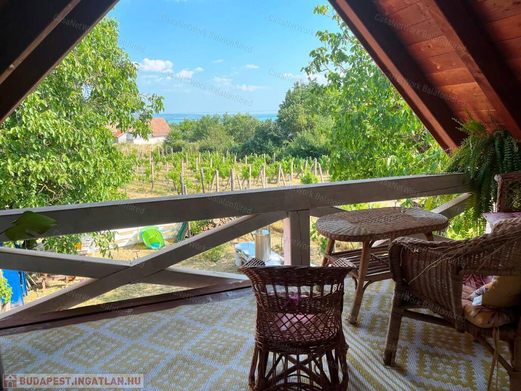 - Felső rész: két szoba, részben balatoni panorámás terasz ahol esténként jól esik egy kis borozgatás mellett csodálni a természet adta szépséget