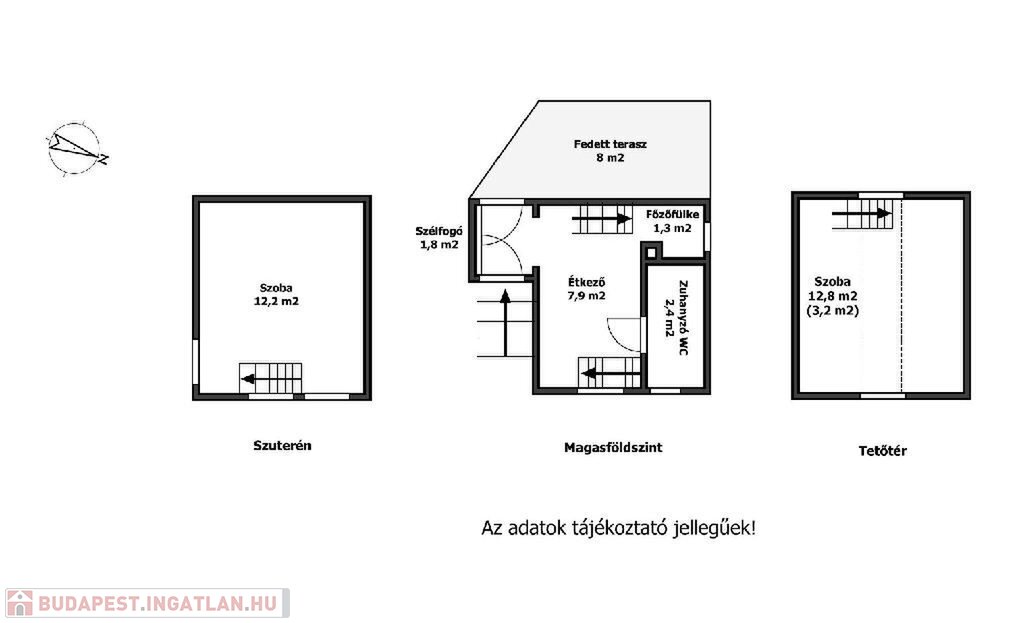 Az épületben 2 szoba található, egy a szuterén szinten és egy a tetőtérben, 4 fő kényelmes pihenésére ideális. Az épülethez nagy fedett terasz kapcsolódik.
