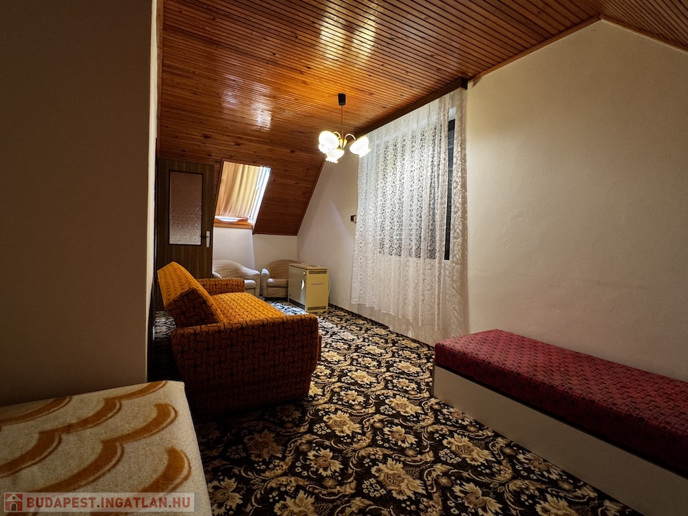 Galyatetőn 860 méter magasan a kristálytiszta hegyi levegő és az elviselhető hőmérsékletű nyarak hazájában eladóvá vált egy karbantartott, tágas terekkel rendelkező 2 utcára nyíló nyaralóingatlan. A környék túlárazott ingatlanjaihoz képest abszolút reális áron juthat hozzá ehhez a 3 szintes 2 teraszos, éjszakai árammal is rendelkező, 4-5 gépjármű kényelmes parkolását biztosító ingatlanhoz. A legalsó szinten 49 m2 tároló - garázs, a 46 m2-es földszinten 26 m2 nappali, konyha, kamra, előszoba és fürdőszoba, míg a 41 m2-es tetőtéri szinten egy 17 és egy 21 m2-es szoba, valamint közlekedő található. A tetőtéri szinten 6, míg a nappaliból nyíló terasz 9 m2 nagyságú. Az ablakokon zsalugáterek, a házban riasztórendszer, a nappaliban és a nagyobb emeleti hálószobában fatüzelésű kályhák is találhatóak a hőtárolós elektromos fűtőtestek mellett. A betoncserép tetőzet, a masszív falazat, a kertben kialakított támfalak, az ingatlan előtti parkolók még értékesebbé teszik az ingatlant, és jónéhány beruházástól szabadítják meg az új tulajdonosát.
