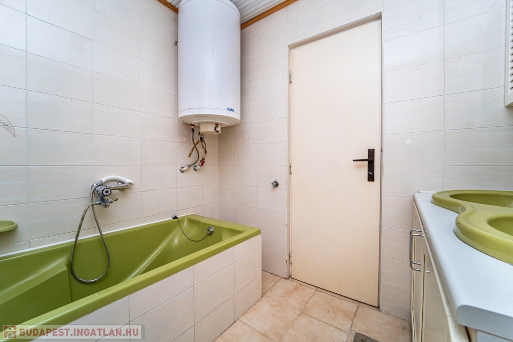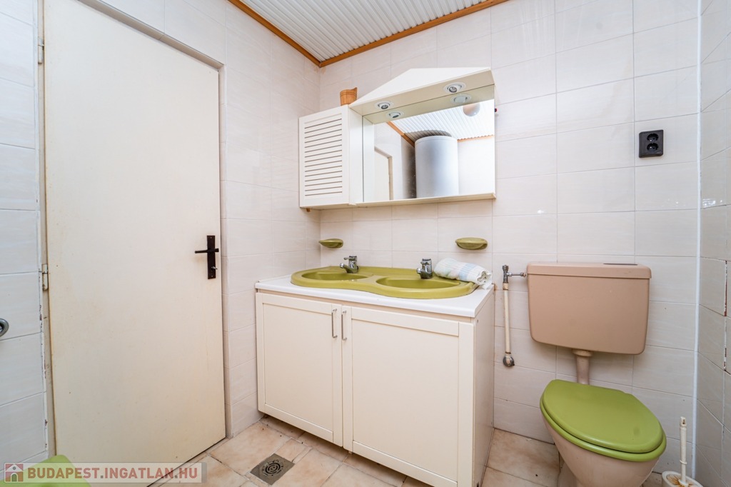 A kádas fürdőszobában és külön is található WC. Az épület fűtéséről cserépkályha, valamint elektromos padlófűtés gondoskodik, külsőleg 5 centi polisztirollal szigetelt. Nyílászáróit sötétíteni és biztonságosan bezárni hosszabb távra fa zsalugáterekkel lehetséges, az emeleten több már hőszigeteltre cserélve.
