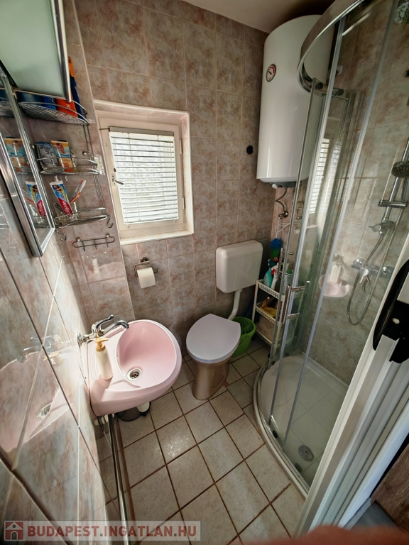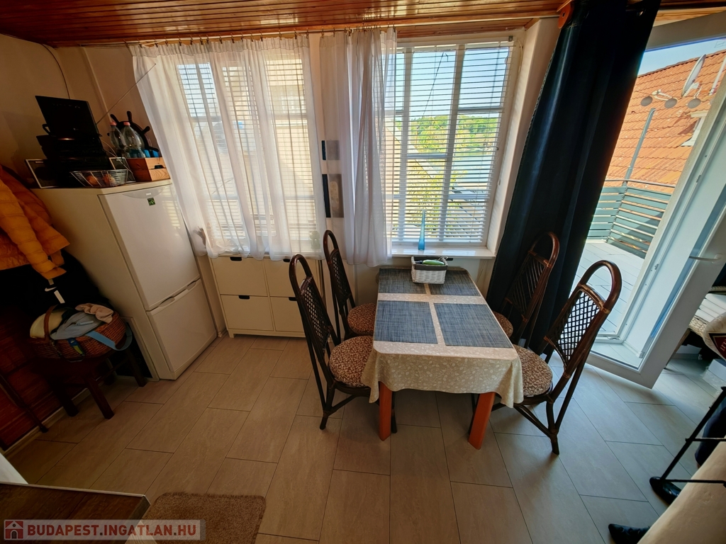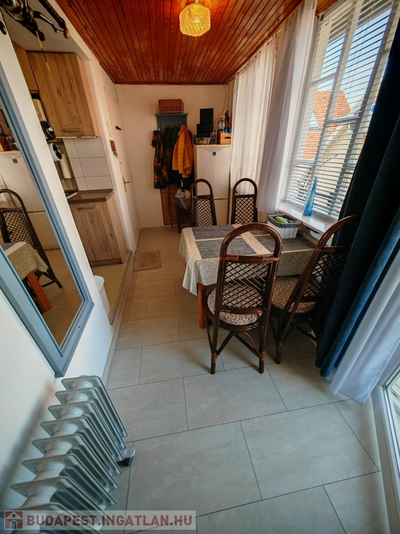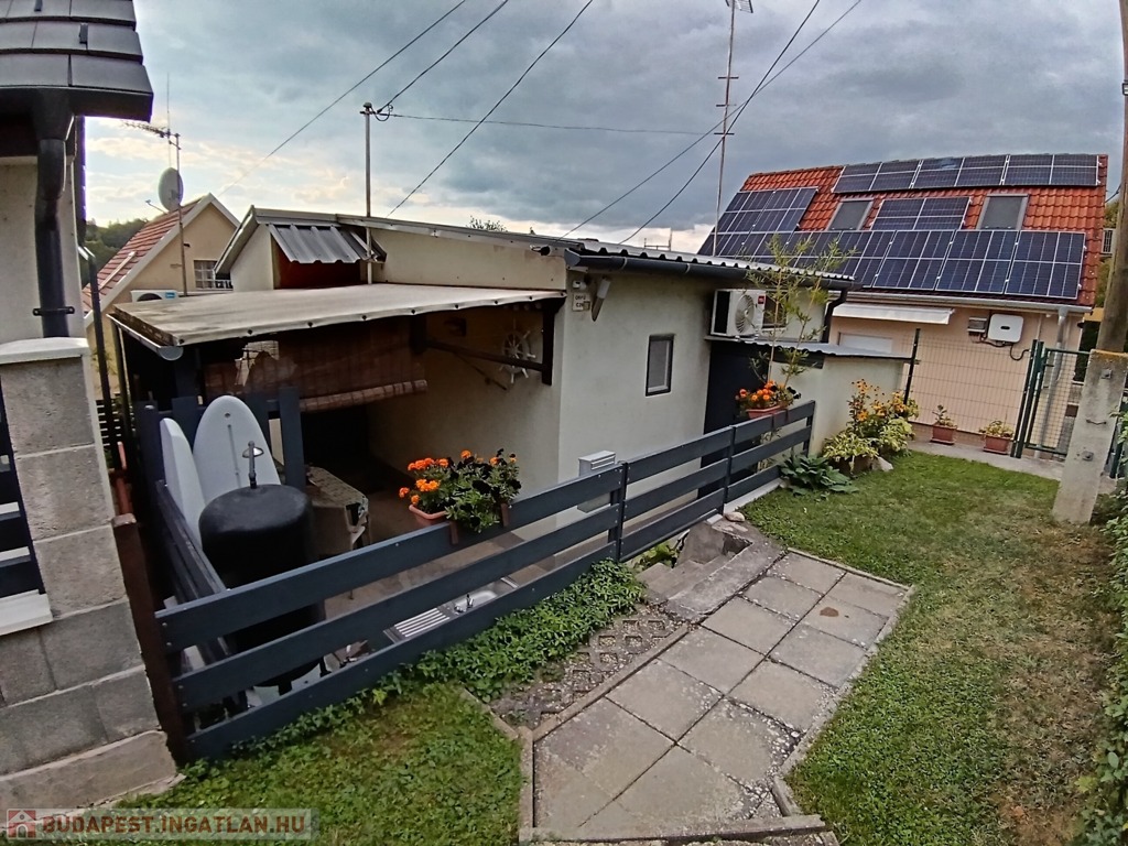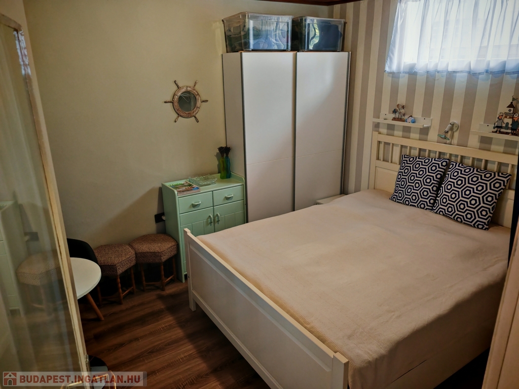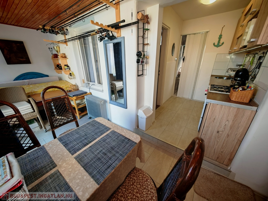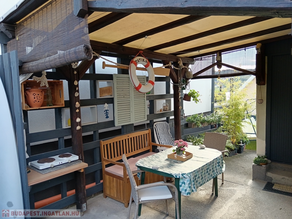 A házban szoba, konyha, fürdő-WC, valamint egy kis étkezőként és szobaként használható helyiség kapott helyet. A fűtés-hűtést új klímaberendezés biztosítja, a melegvízről bojler gondoskodik. A tetőt tavaly cserélték és szigetelték. Gázcsonk az udvaron belül.