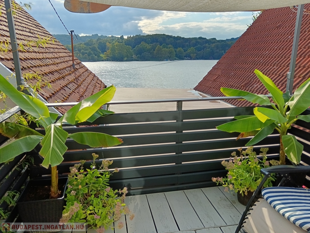 A 80 m²-es telek igényesen és praktikusan lett kialakítva. A tóra néző, tágas terasz nyugodt pihenést kínál, ezen kívül fedett terasz, tároló, hintaágy és kemence is található rajta – utóbbiak igény szerint megvásárolhatók.