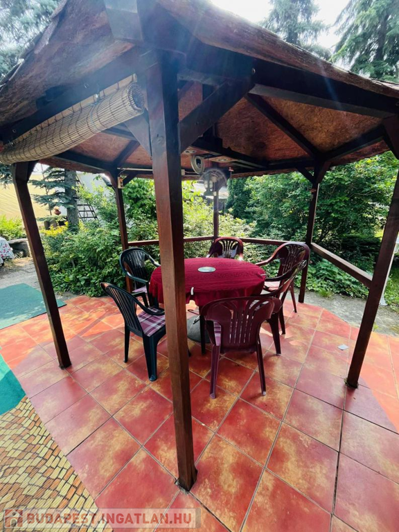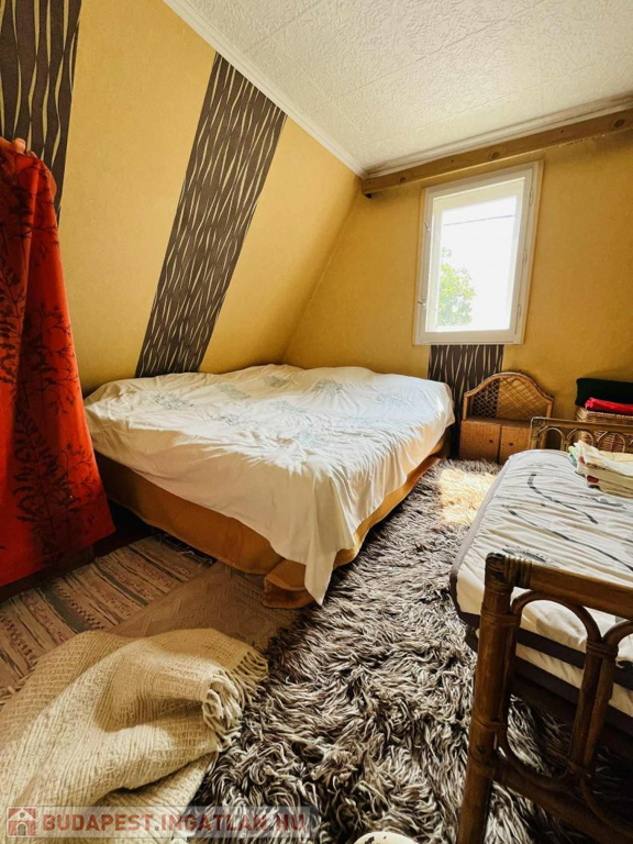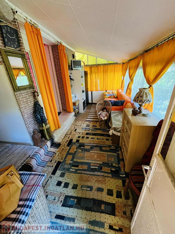 Ez a hétvégi ház 600 nm telken helyezkedik el, téglából épült 1977-ben. Aszfaltútról jól megközelíthető, közel a főúthoz,mégis elzárt, intim kertkapcsolat a sajátossága.