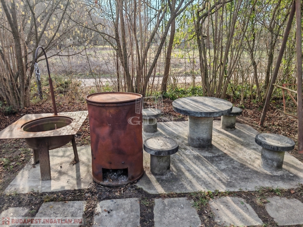 A telek sarok telek, ezért szerencsés módon, csak egy oldalról van csak szomszéd. Privát életteret biztosít. A kertben zuhanyozási lehetőség, sütögető, és bogrács is helyet kapott.