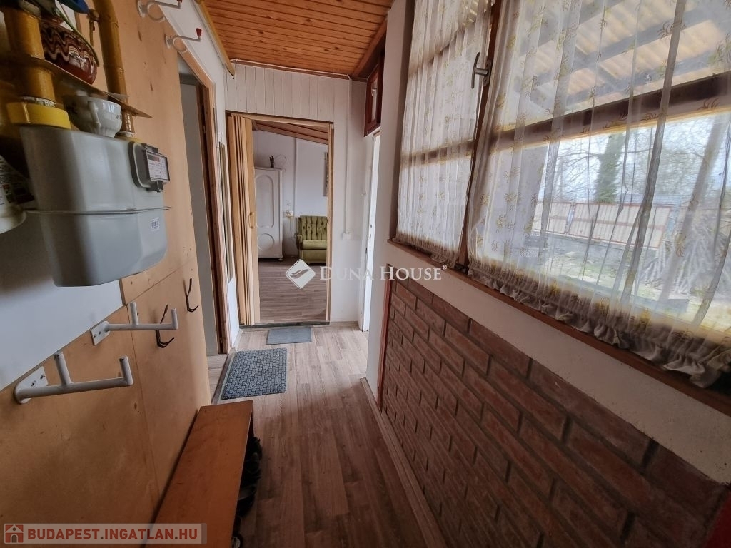 Az 50 m2-es tégla építésű nyaraló, 450 m2-es összközműves telken található.
