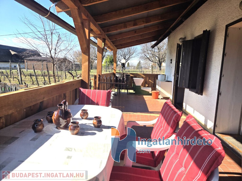 65 m2-es nyaraló. A 2024 m2-es, gondozott telek művelés alól kivont (így azonnal birtokba vehető!), és gazdagon beültetett szőlővel.