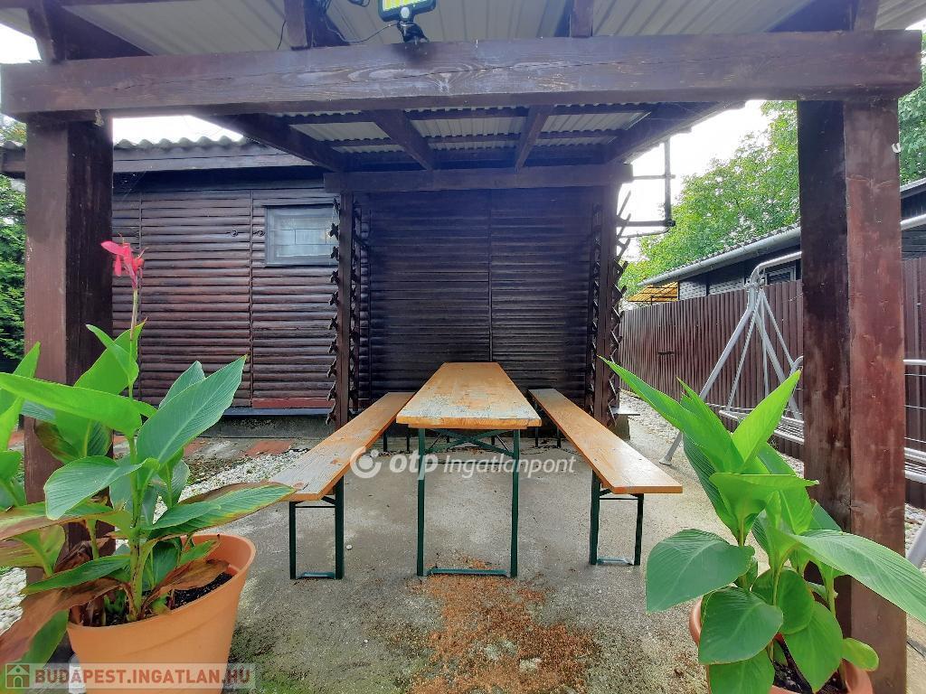 A ház egy 398 m2-es, körbekerített telken szabadon állóan helyezkedik el, a hátsó kertben fedett terasz és szerszámtároló áll rendelkezésre. Parkolási lehetőség a zárt udvarban adott. Az ingatlan villany- és víz közművekkel rendelkezik, melegvíz ellátás villanybojlerrel megoldott.